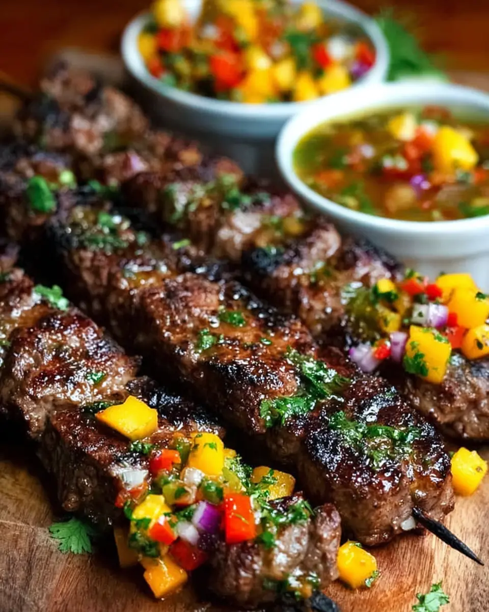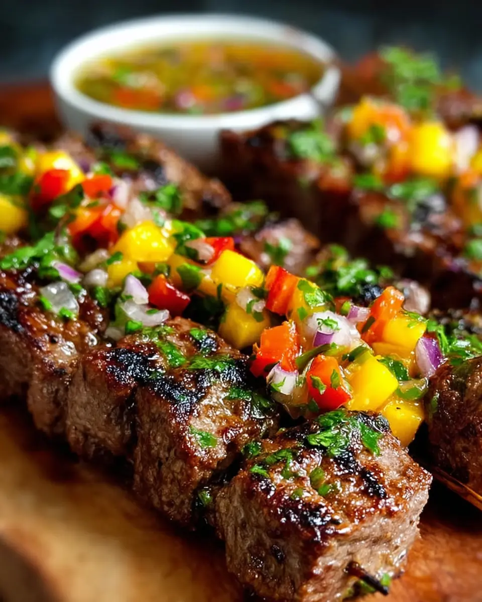 Jamaican Jerk Beef Skewers: Juicy Delight with Mango Salsa