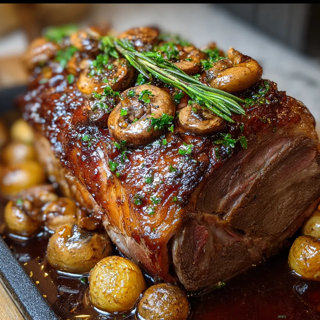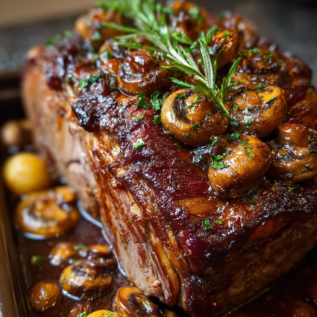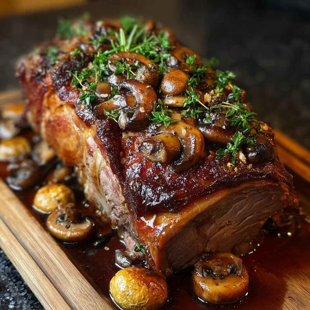 Juicy Crown Roast of Beef Leg with Mushrooms: A Delicious Feast