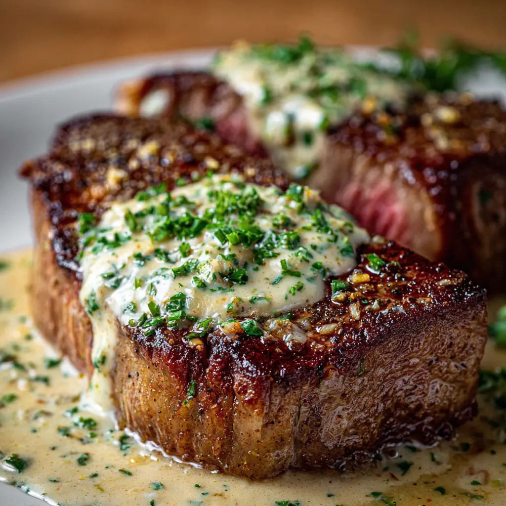 Imagine sinking your teeth into a tender ribeye steak topped with a rich herbed butter sauce! This variation elevates your steak by combining sautéed garlic, fresh herbs like rosemary and thyme, and a generous knob of butter.