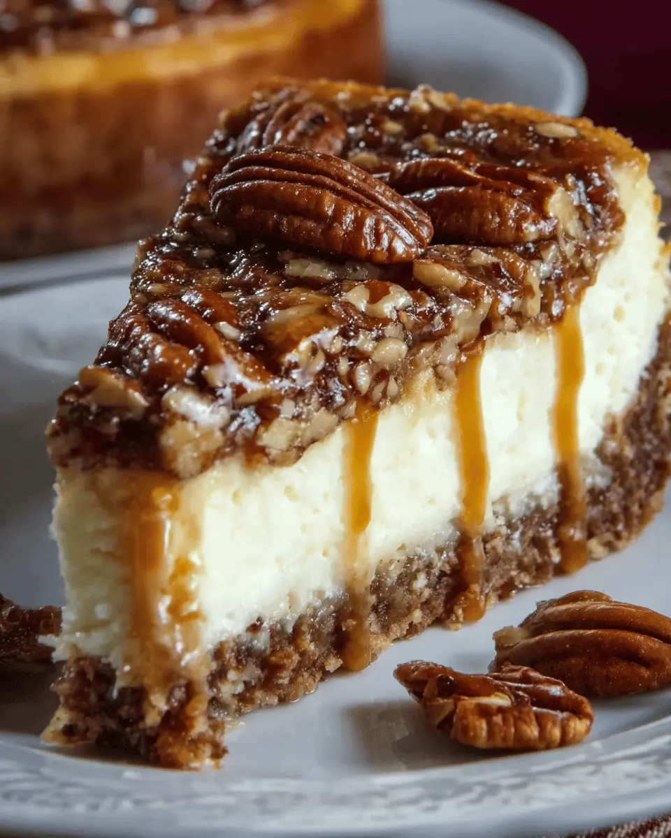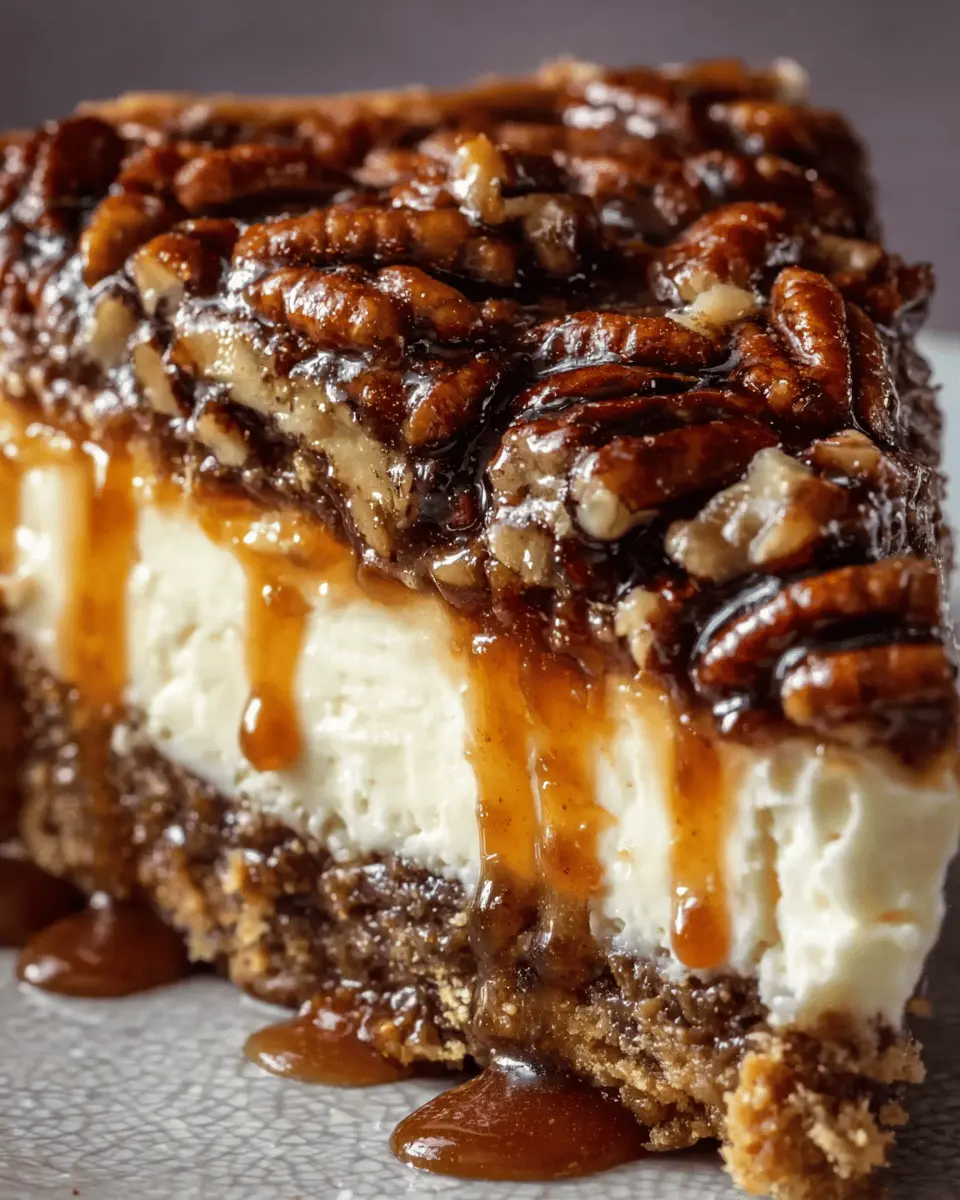A rich and decadent cheesecake that combines the flavors of classic pecan pie with a creamy cheesecake layer, perfect for the Kentucky Derby or any family gathering.