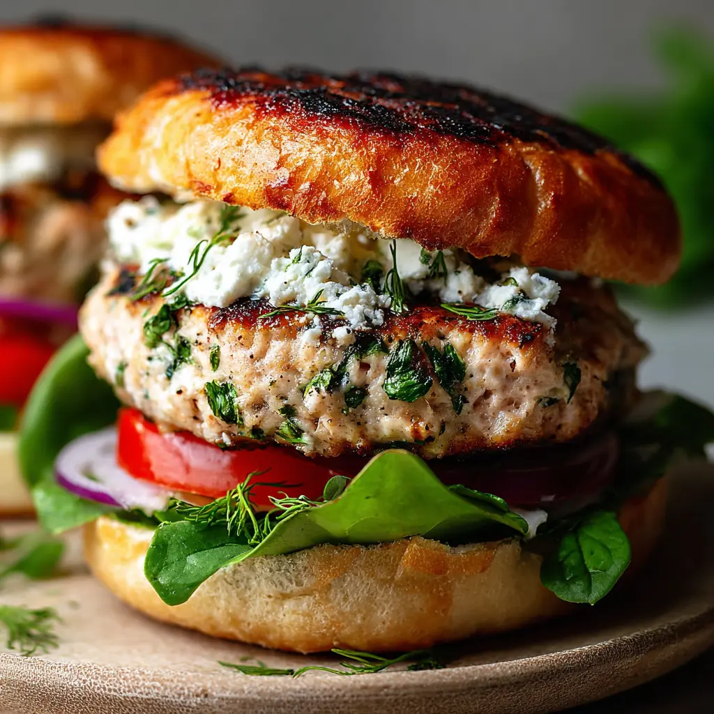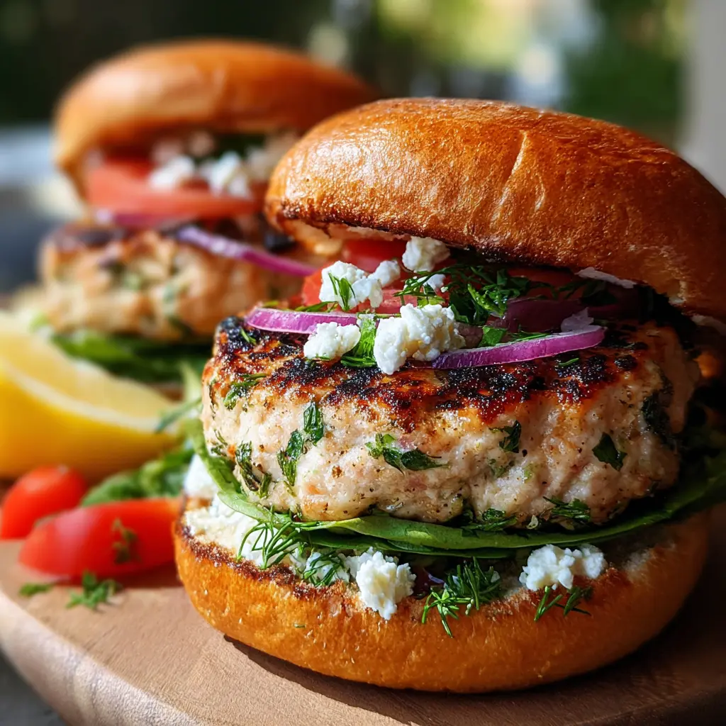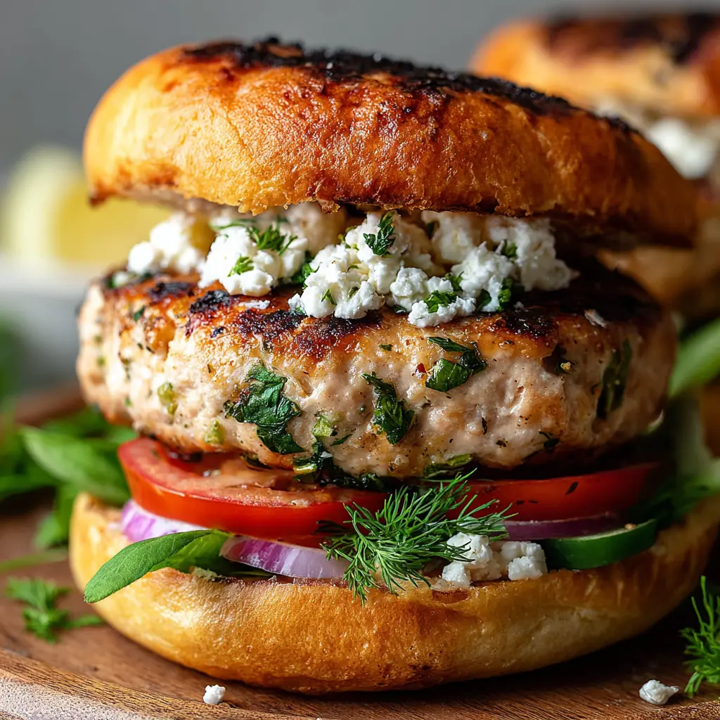 Mediterranean Greek Chicken Burgers with Herbs and Feta Bliss