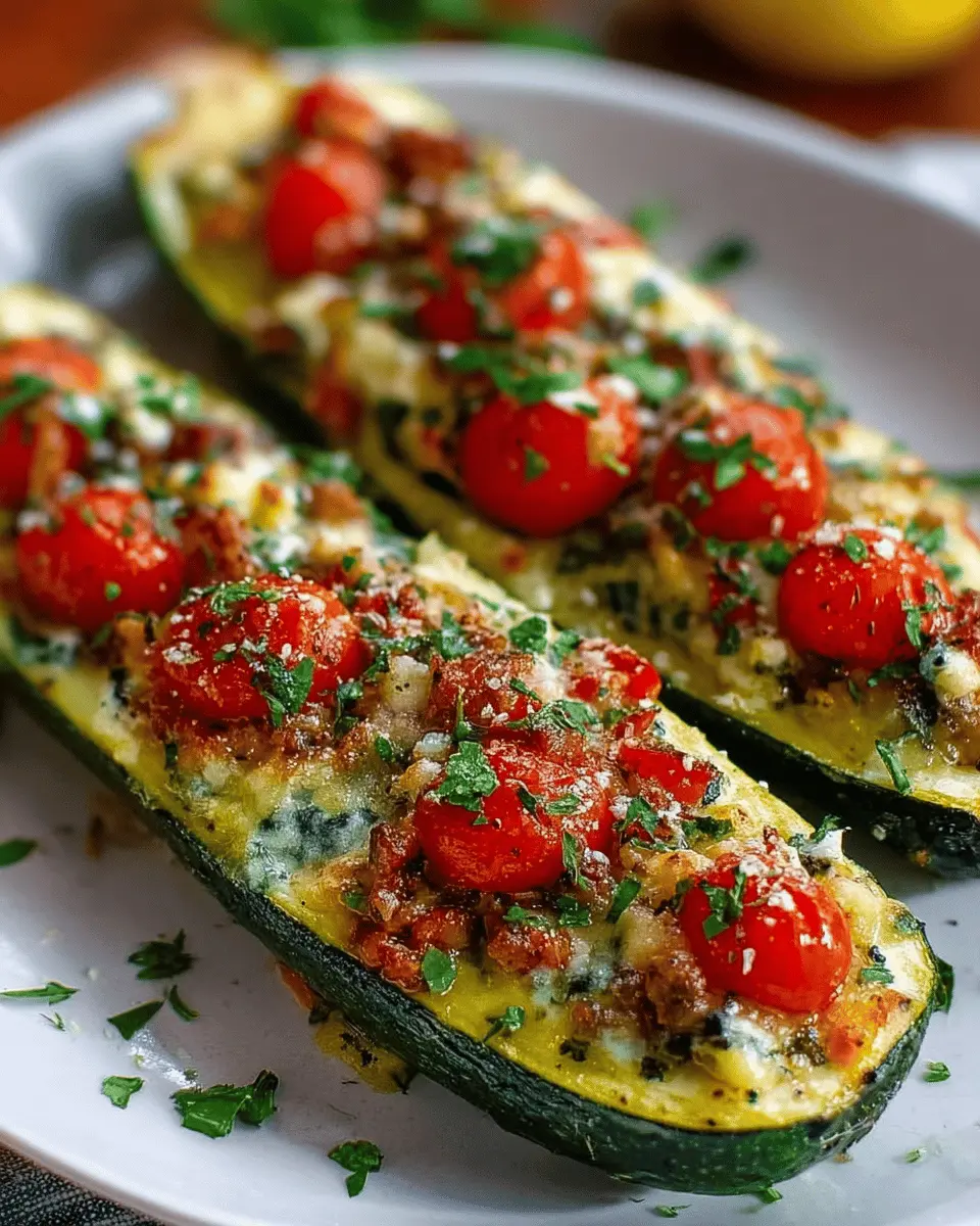 For a delicious, indulgent twist, consider a cheesy baked version of Mediterranean Stuffed Zucchini Boats. Opt for fresh mozzarella or grated Parmesan for a melty topping that will have everyone asking for seconds. Simply sprinkle the cheese on top in the last 10 minutes of baking. The result is a golden, bubbly surface that contrasts beautifully with the tender zucchini. Pair it with a crisp salad for a meal that feels both gourmet and comforting.