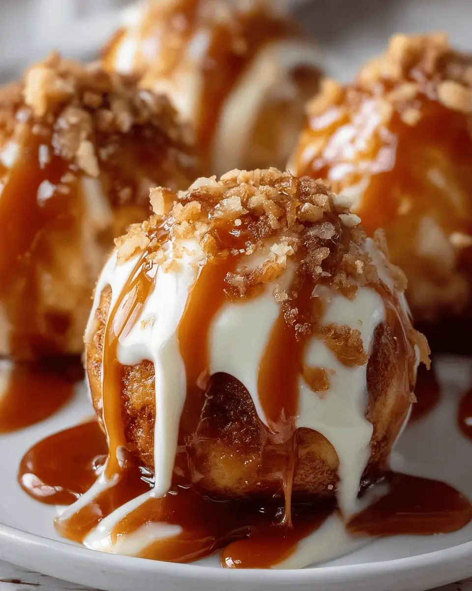 When it comes to melt-in-your-mouth apple caramel bombs, few things elevate the experience like a scoop of your favorite ice cream or a generous dollop of whipped cream. Think about a rich vanilla bean ice cream pairing harmoniously with the warm, gooey apple filling. The creaminess of the ice cream will contrast beautifully with the warm caramel, offering an explosion of flavors in every bite. If you're not a fan of ice cream, opt for freshly whipped cream topped with a dash of cinnamon to enhance those autumnal flavors.