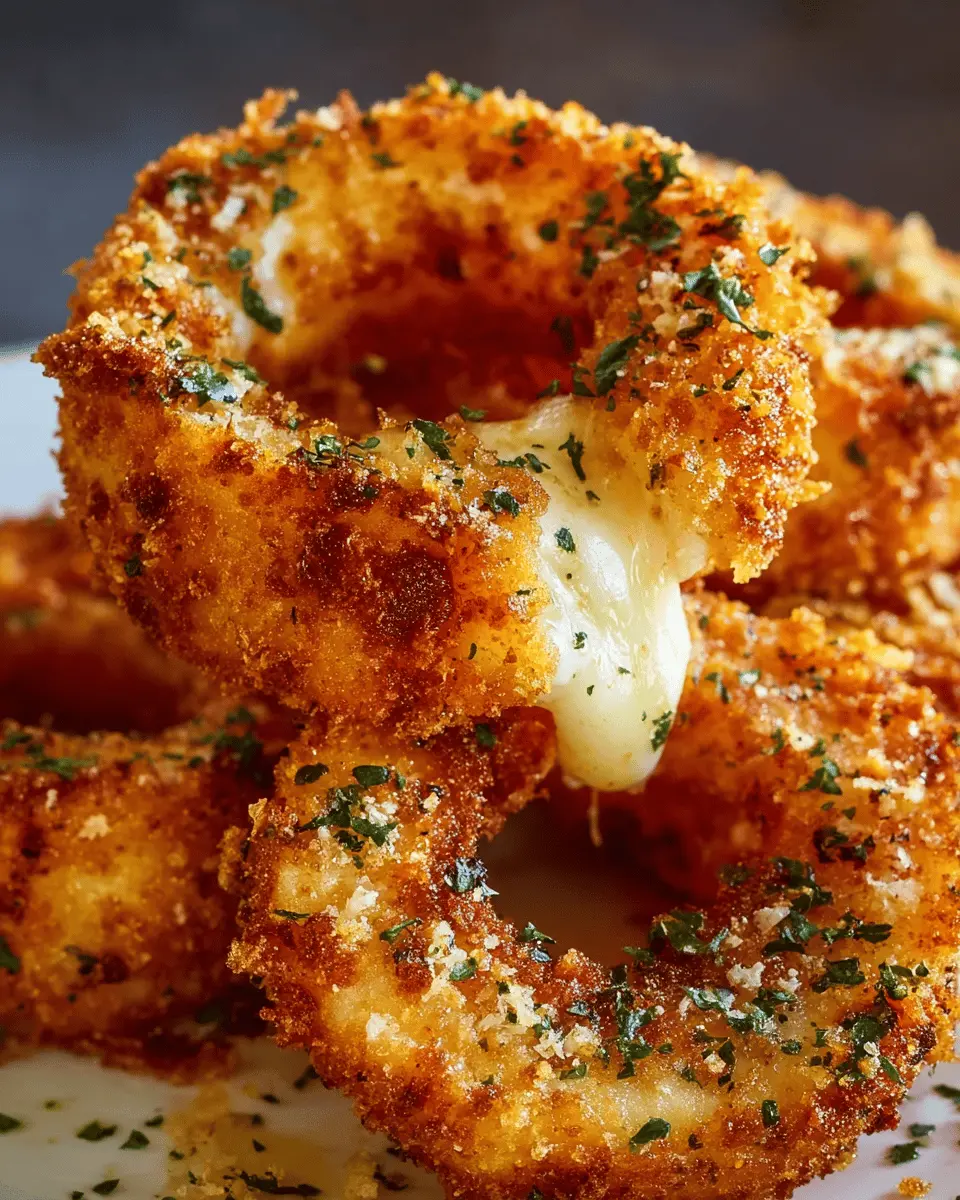 In summary, mozzarella-stuffed onion rings are a delightful twist on a classic appetizer, perfect for impressing friends at your next gathering or satisfying a late-night snack craving. The combination of crispy onion and gooey mozzarella creates a mouthwatering experience that’s hard to resist.