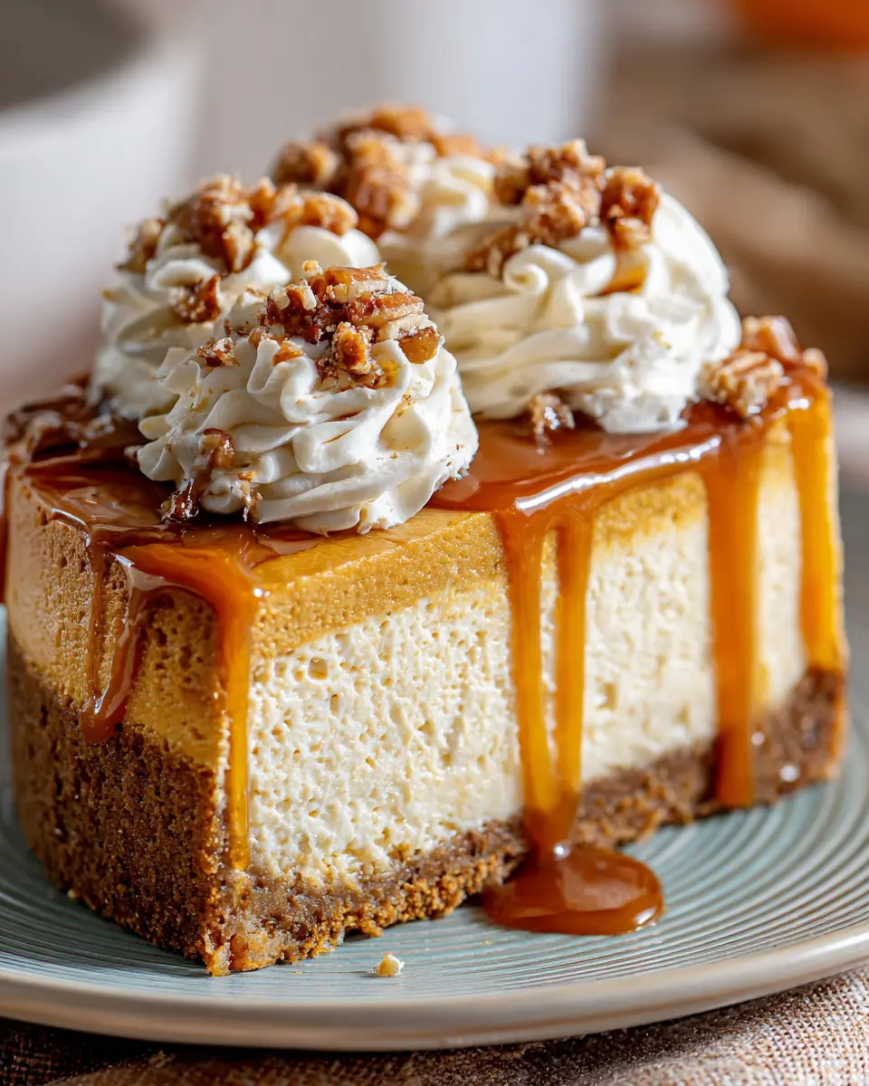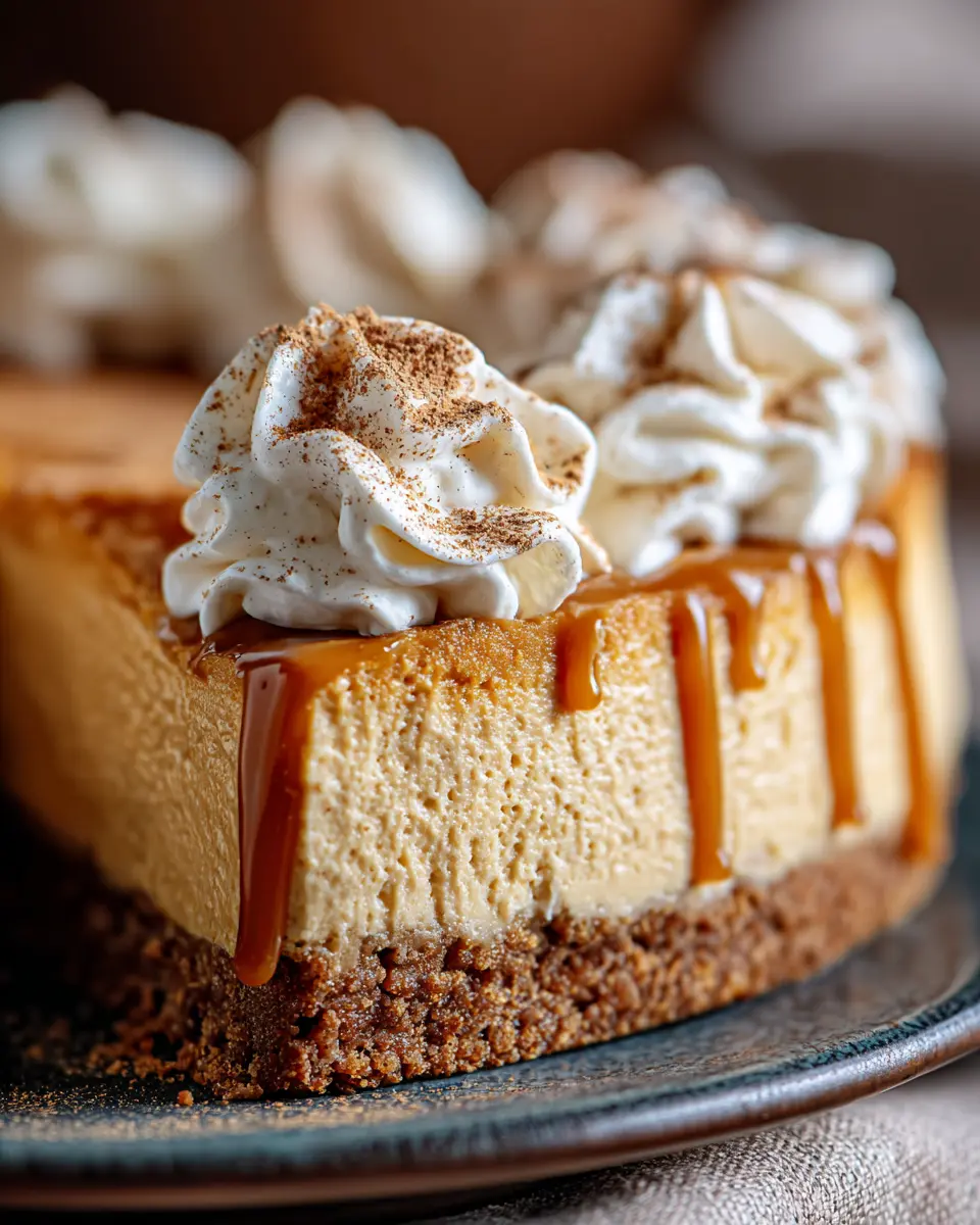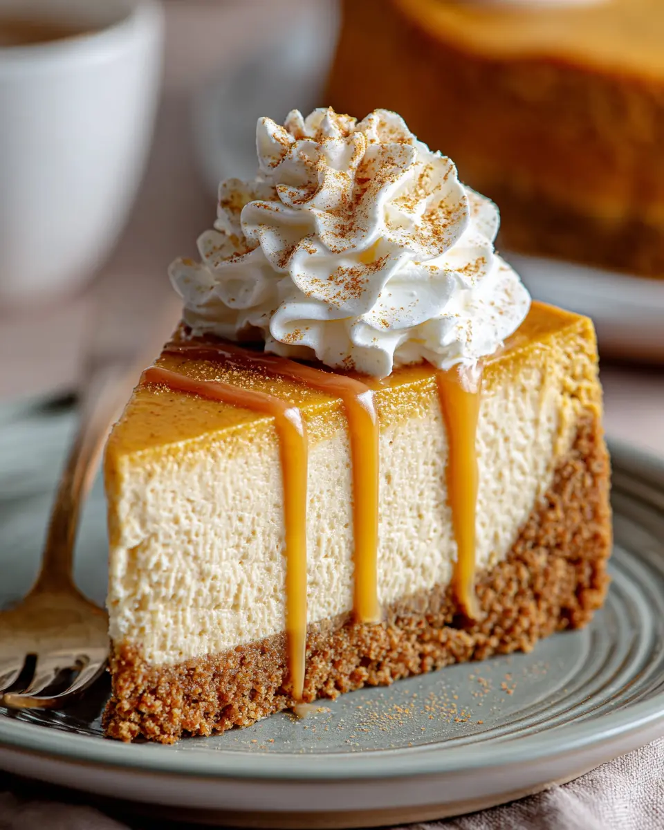Caramel Drizzle: Adding a drizzle of warm caramel sauce can create that perfect sweet balance to the cheesecake’s pumpkin flavor.
