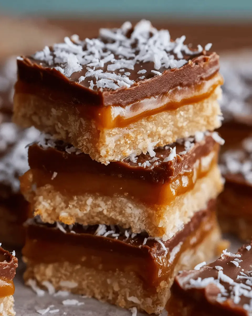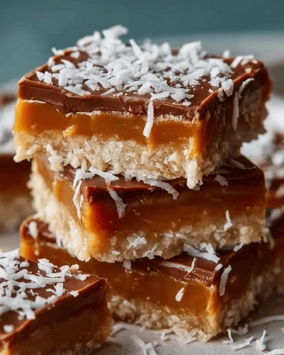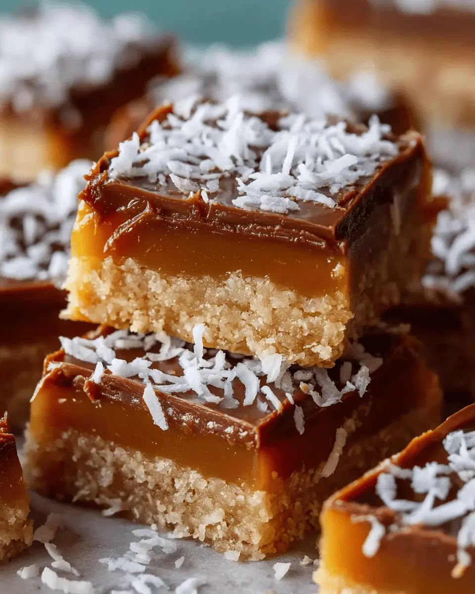 Indulge in these delicious No-Bake Coconut Caramel Bars that combine rich caramel, coconut, and a crunchy base for an irresistible treat.