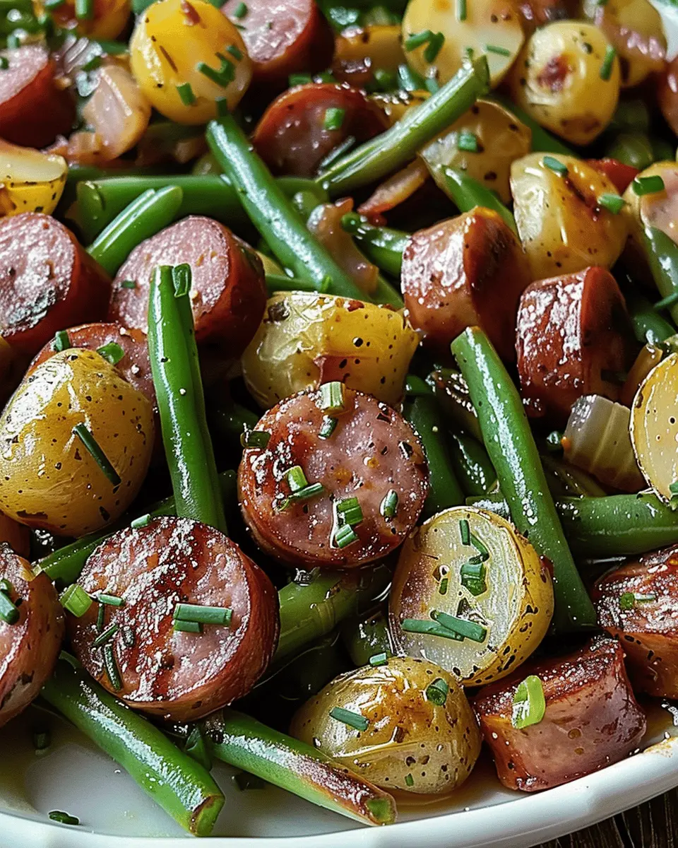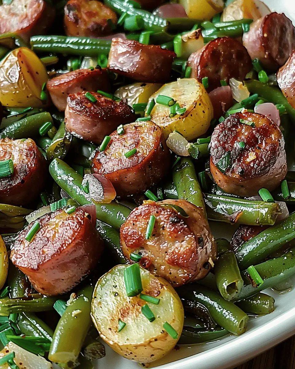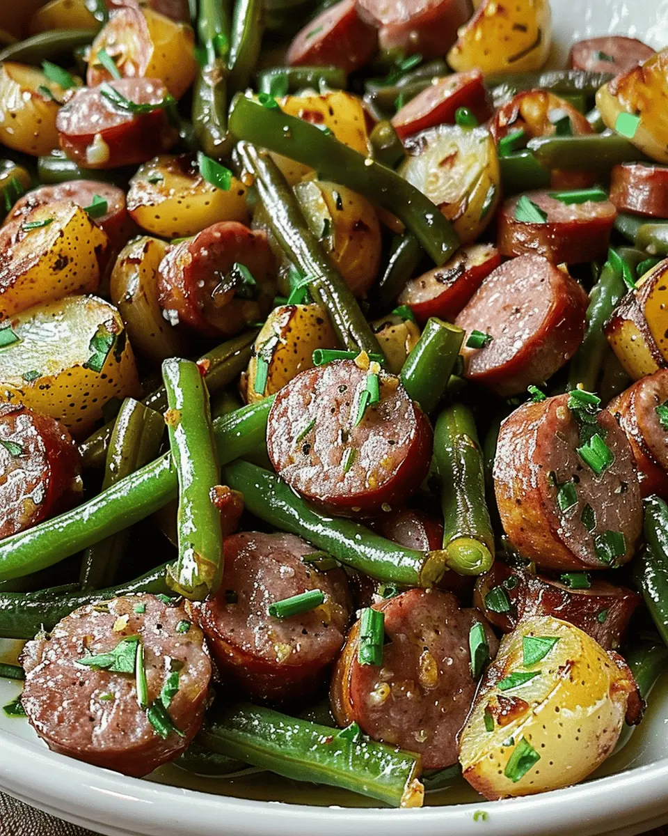 - Crispy roasted potatoes: Their buttery flavor pairs beautifully with the savory sausage and fresh green beans.