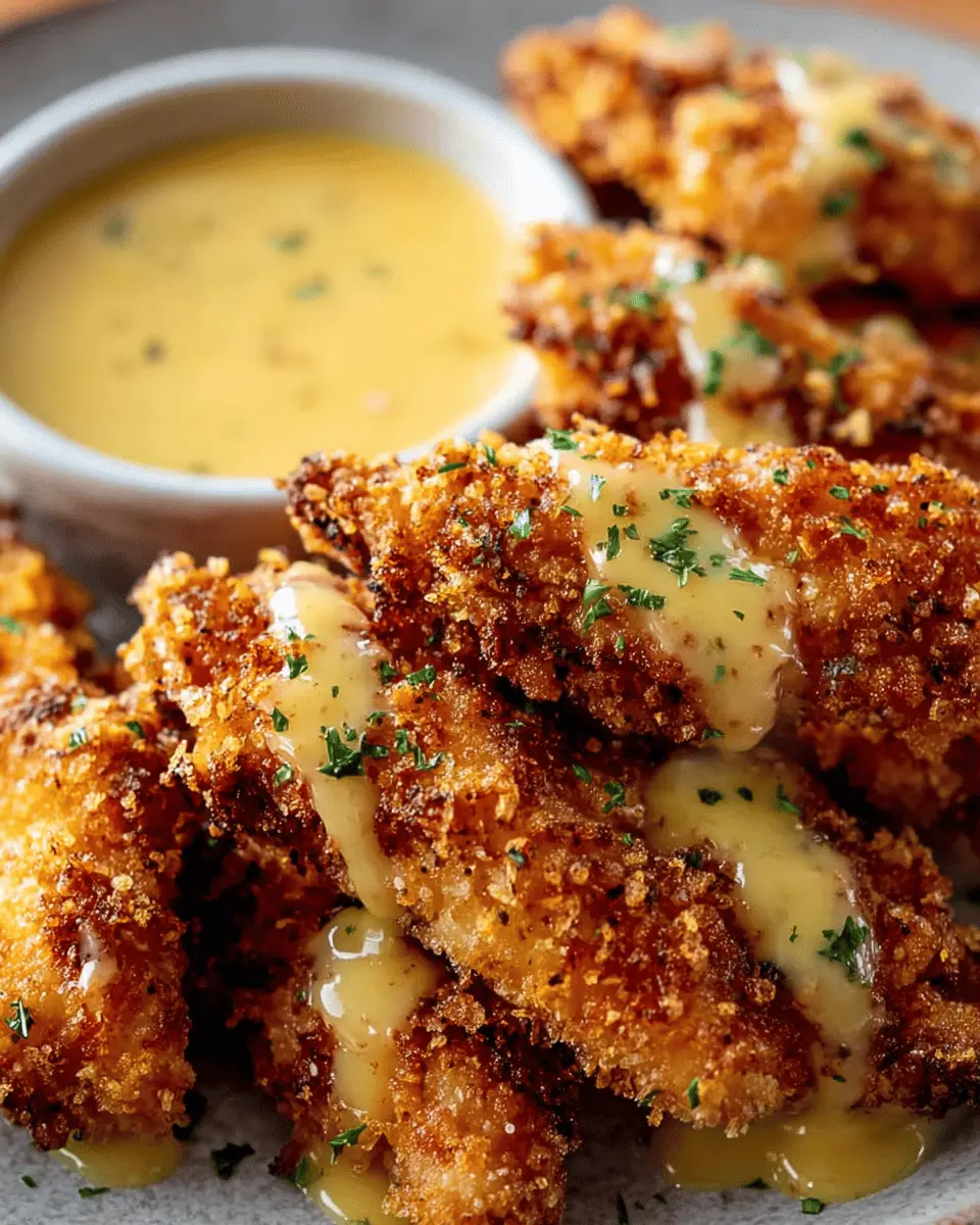Oven-Fried Chicken Strips: Juicy with Creamy Honey Mustard Sauce