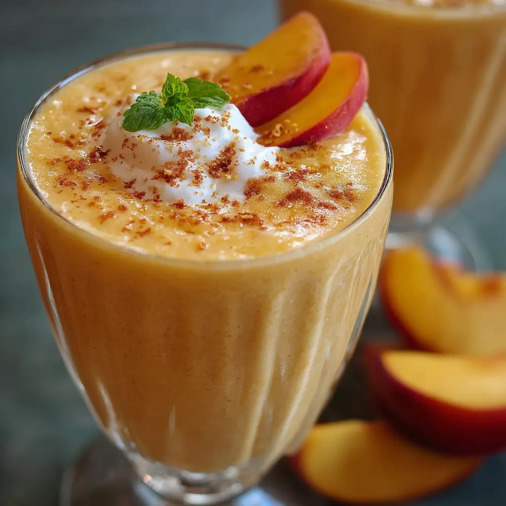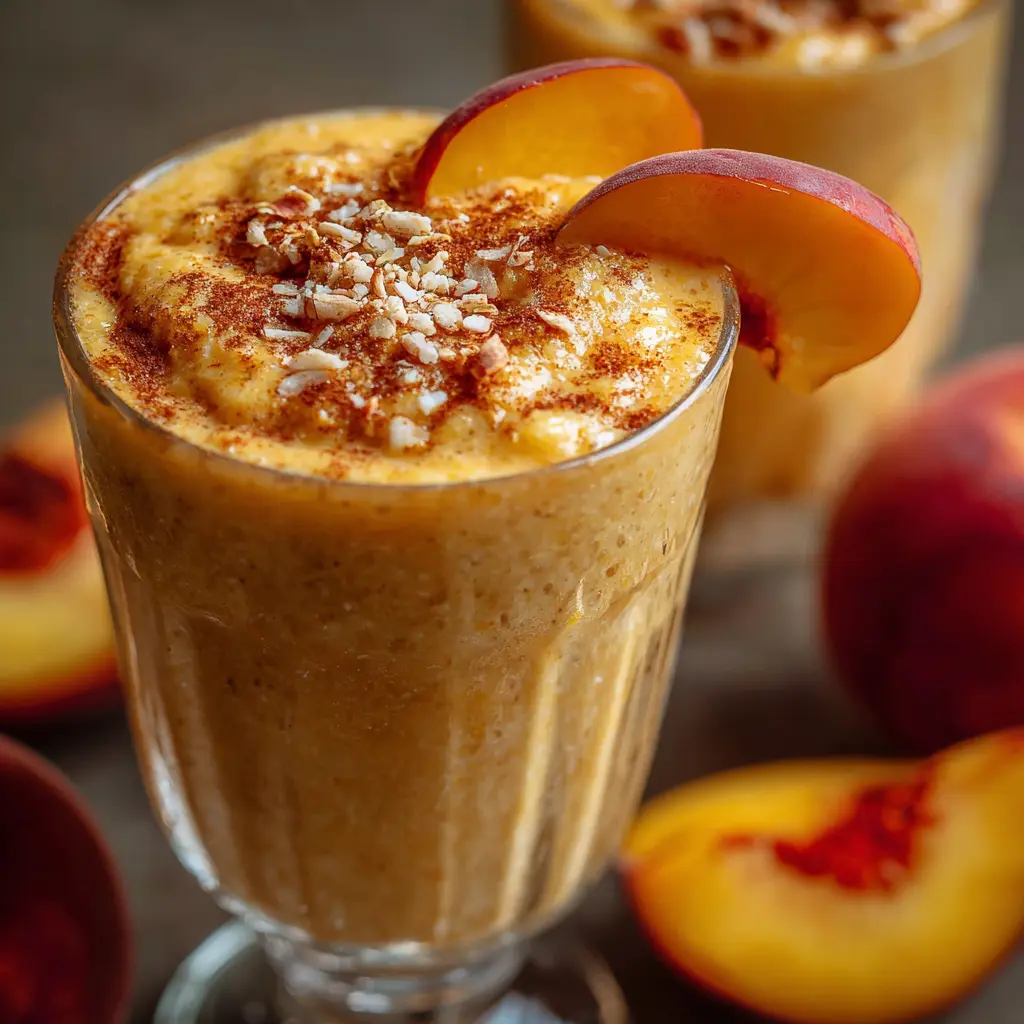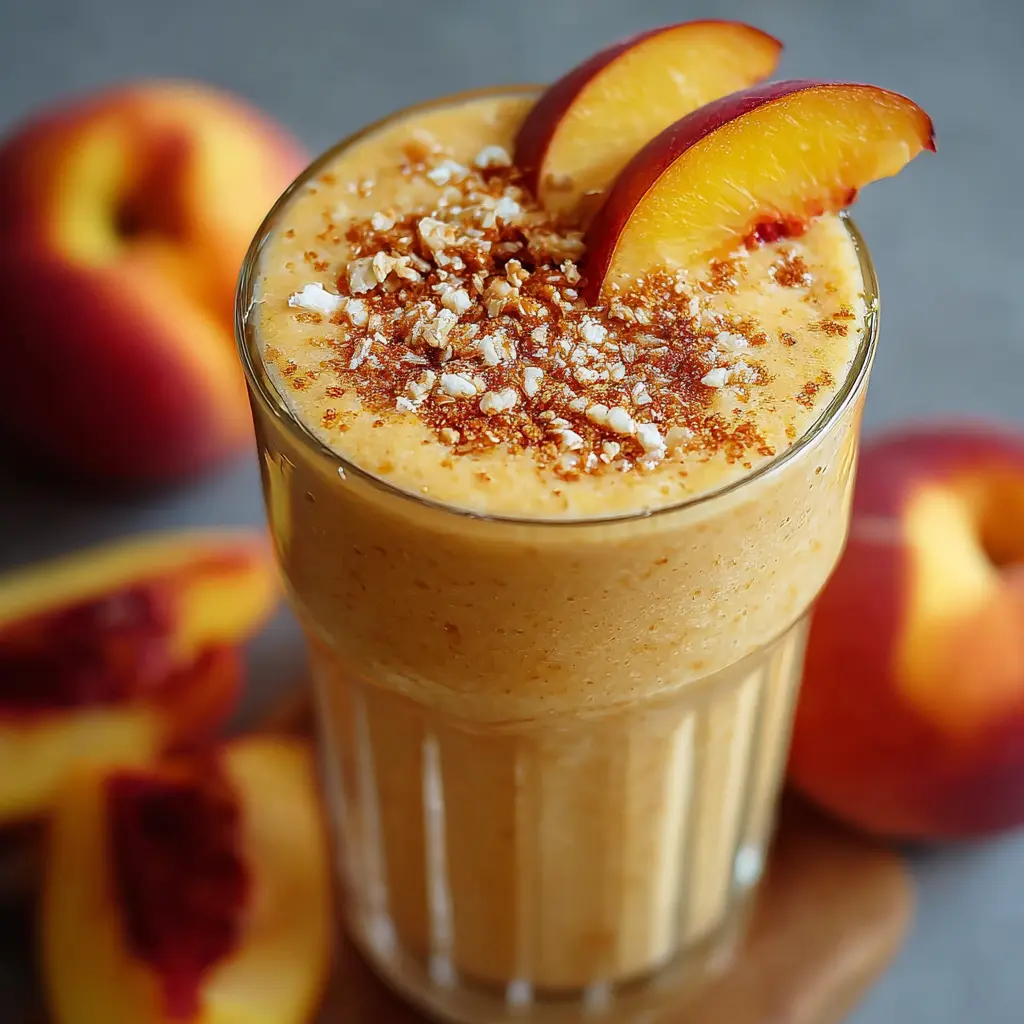 Enjoy the refreshing taste of summer with this delicious Peach Cobbler Smoothie, a perfect blend of peaches and cream.