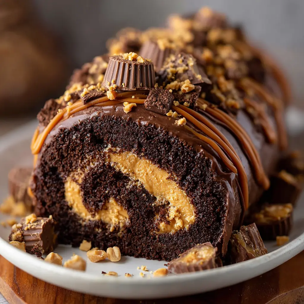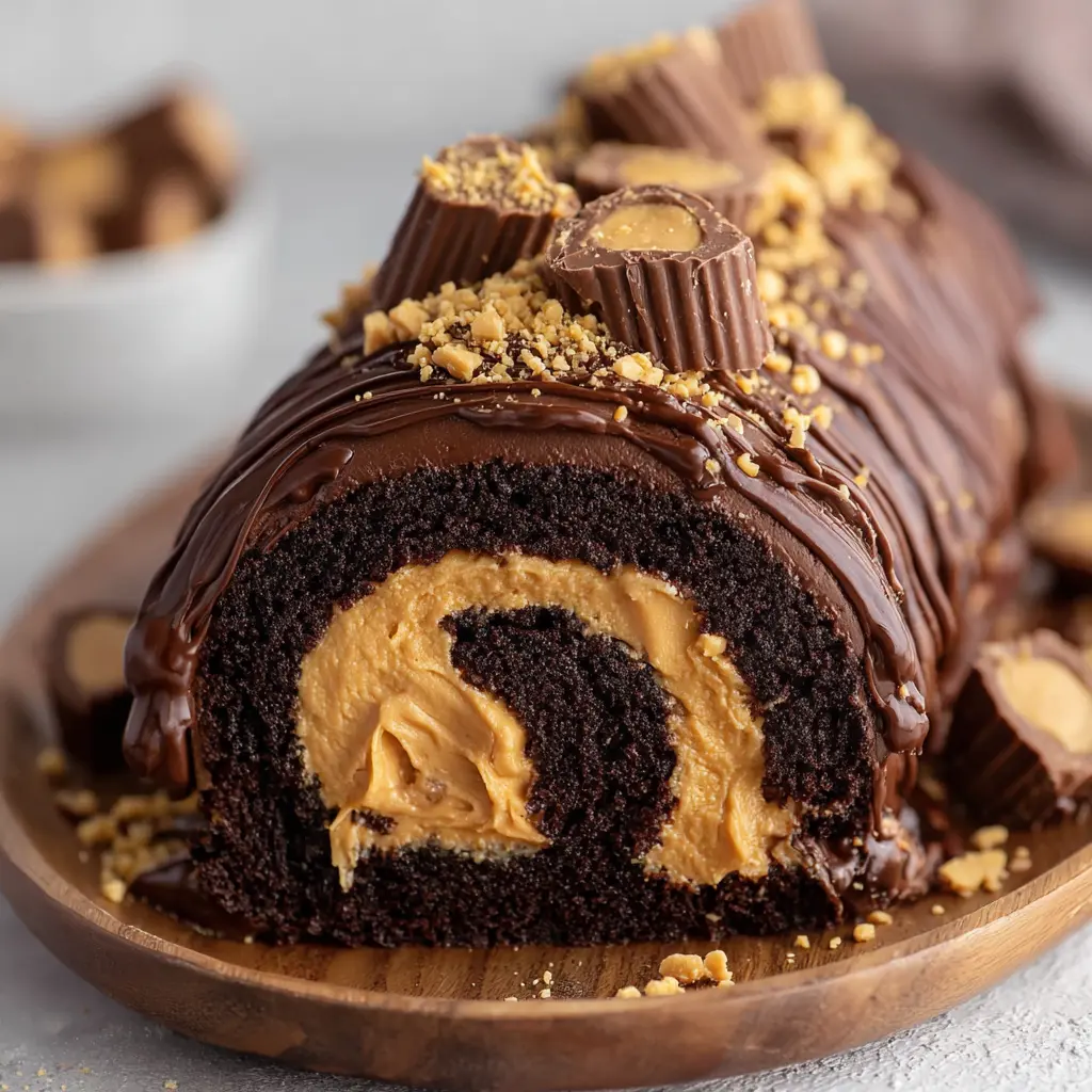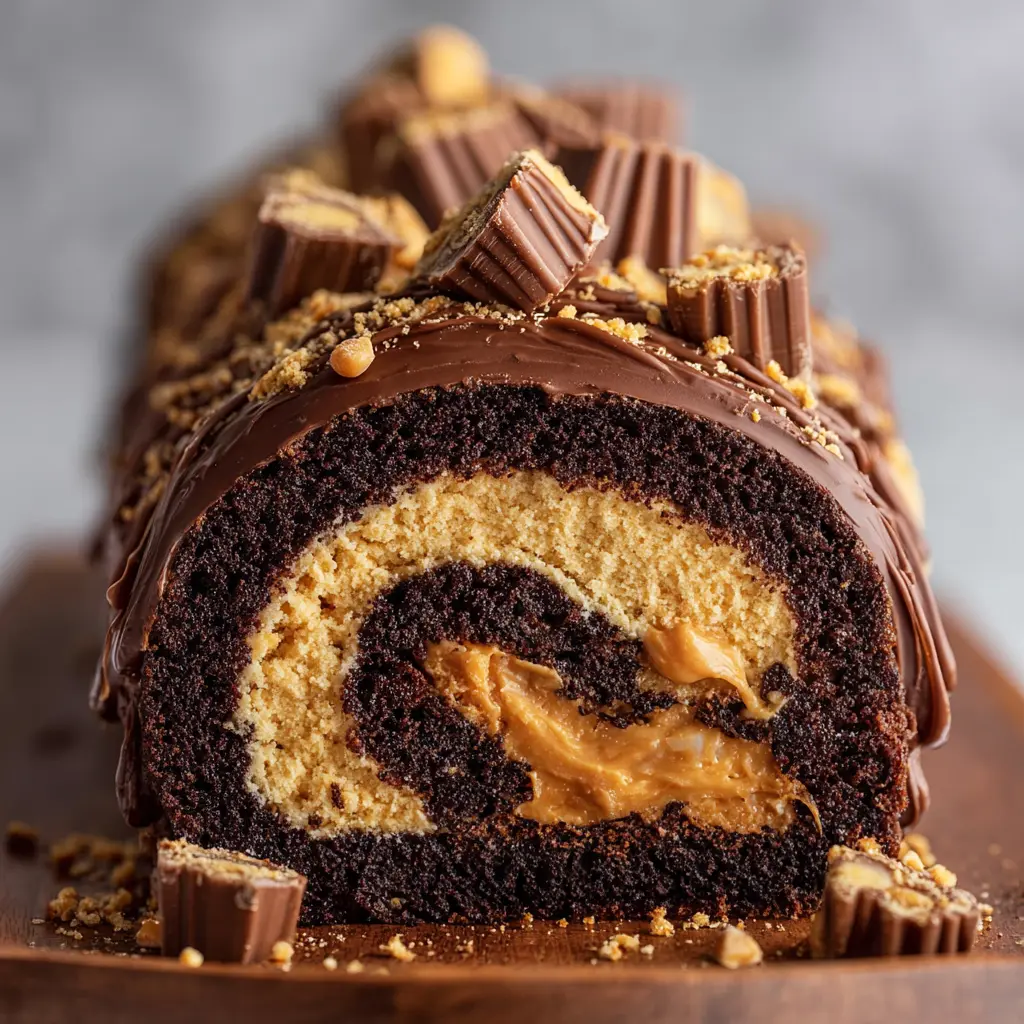 This decadent Peanut Butter Cup Chocolate Roll Cake is the perfect dessert for any occasion, combining rich chocolate with creamy peanut butter filling.