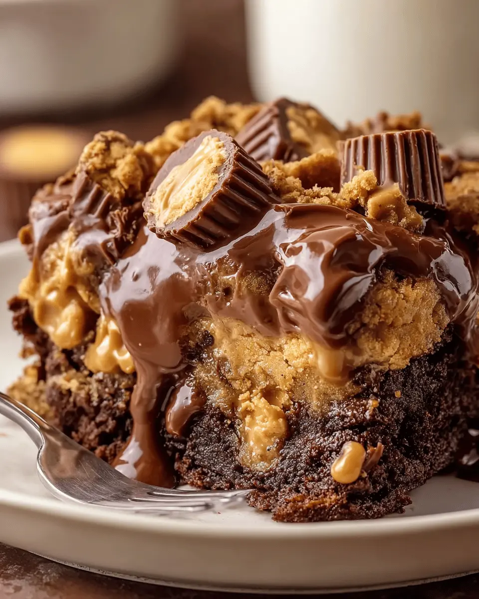 PrintPeanut Butter Cup Dump Cake: Easy Indulgence for All Ages