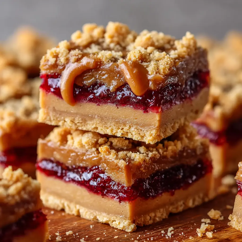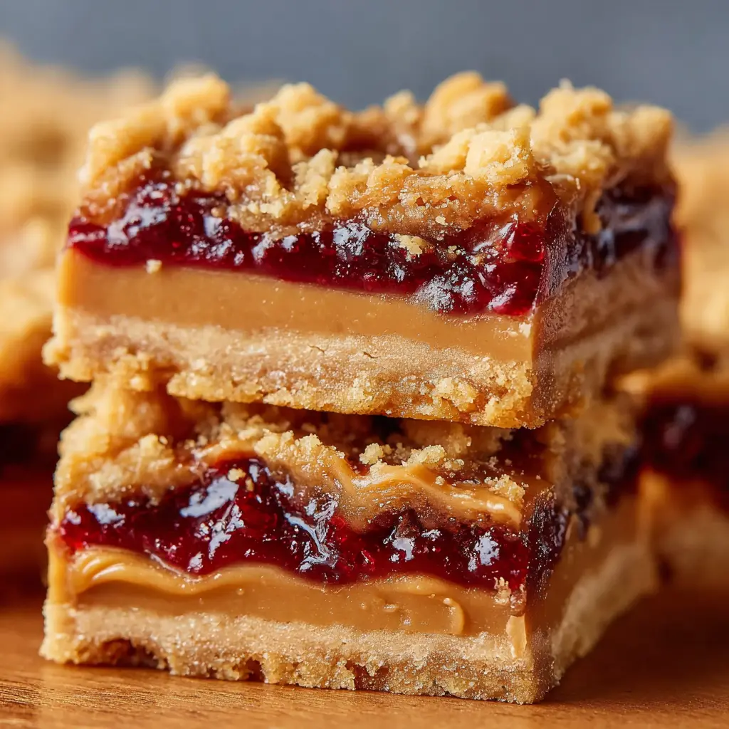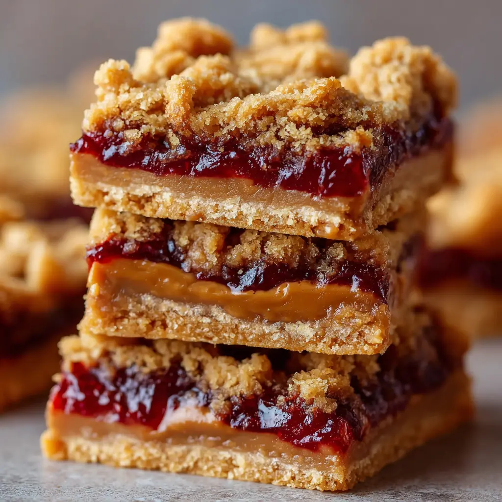 Delight in these Peanut Butter & Jelly Bars, a perfect combination of sweet and nutty flavors in a convenient treat.
