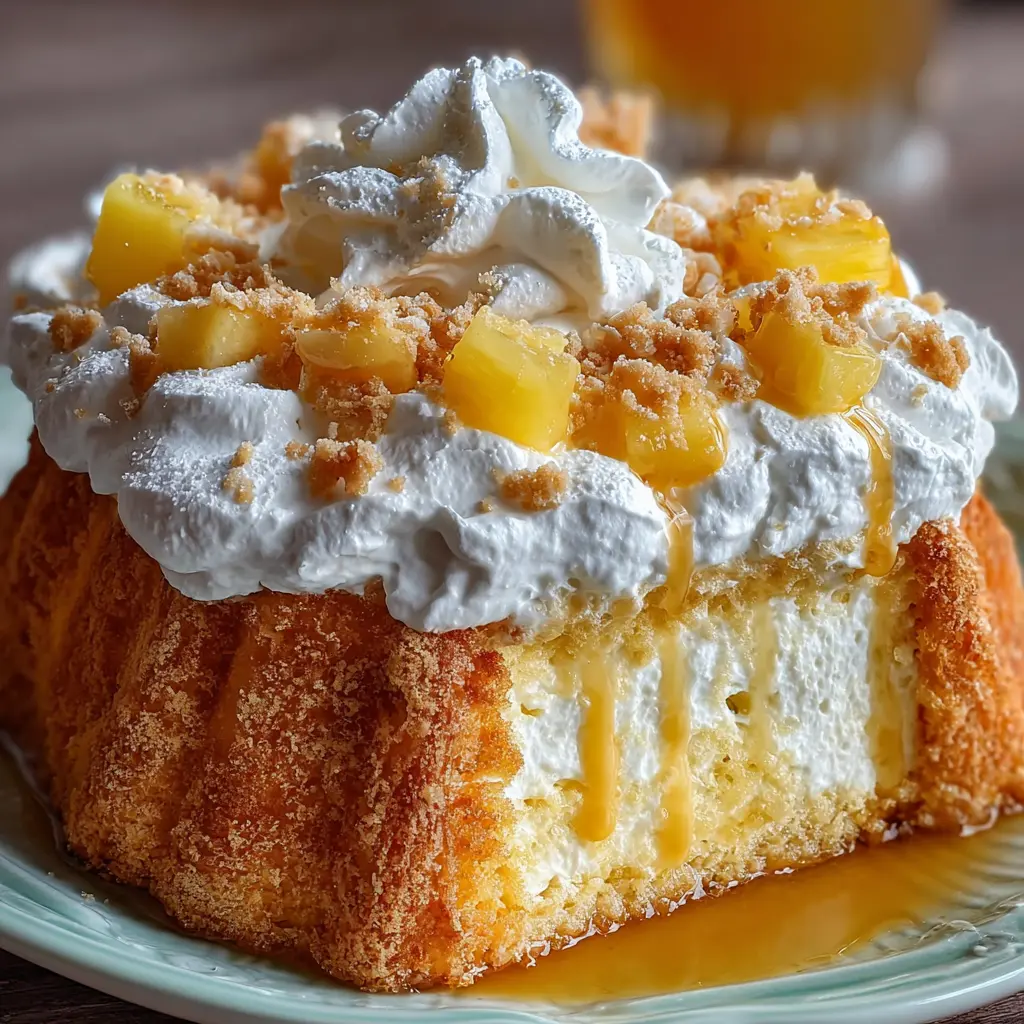 The charm of this cake lies in its simplicity, yet it delivers on both taste and presentation. The key ingredients—angel food cake, pineapple, and whipped topping—create a heavenly combination. The fluffy cake serves as a lovely canvas for a rich, tropical experience that the pineapple adds. Since angel food cake is fat-free, you can indulge a little more without the guilt, making it an ideal choice for summer gatherings or backyard barbecues.