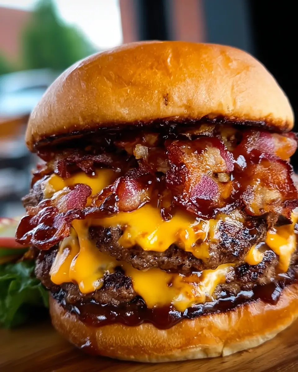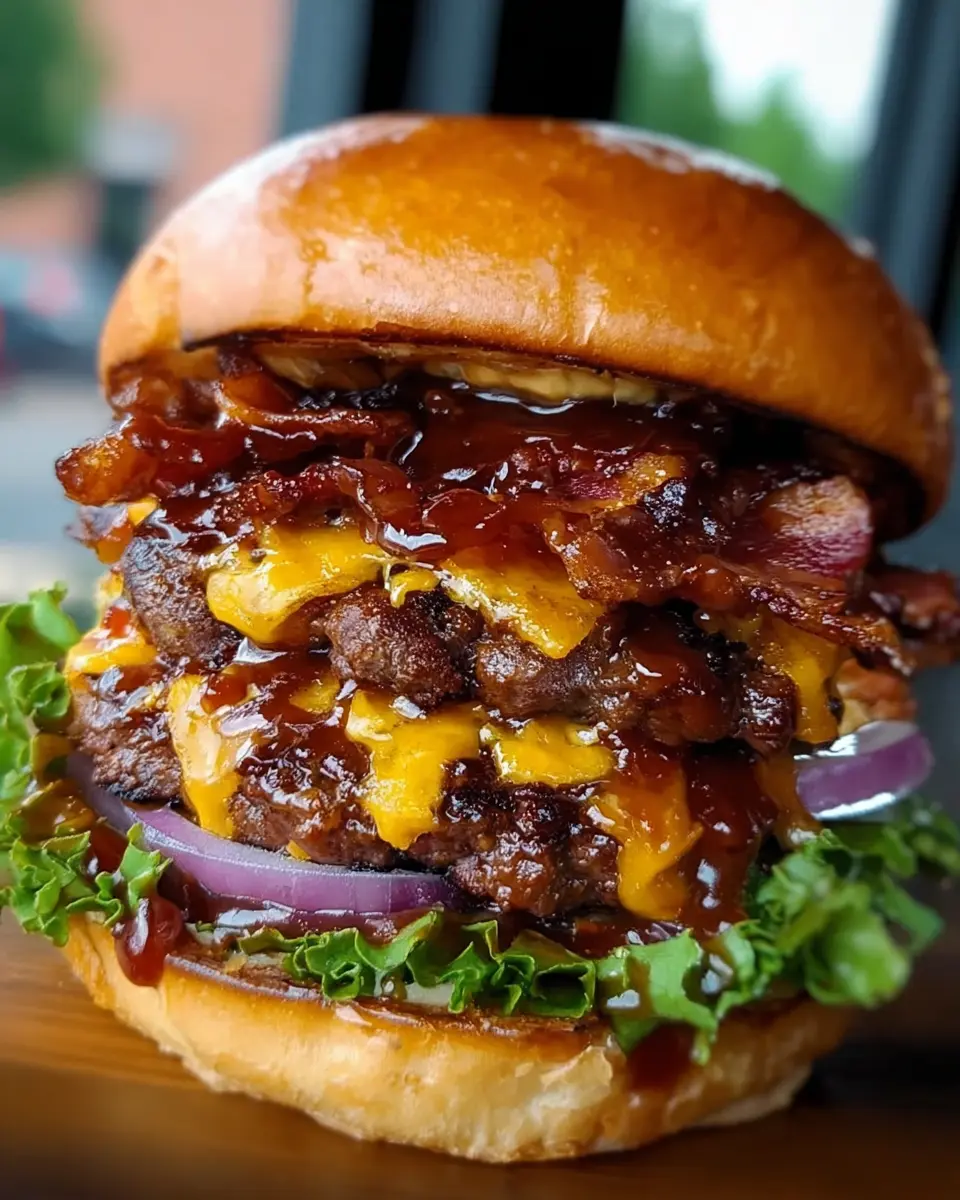 Quadruple Cheese BBQ Turkey Bacon Smash Burger Delight