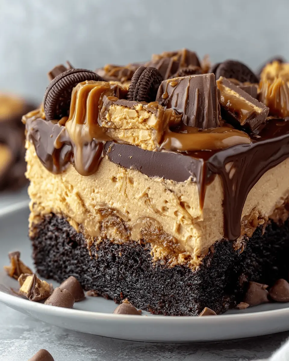 A deliciously rich dessert that combines chocolate cake, peanut butter, and Reese’s pieces for an ultimate indulgent treat.