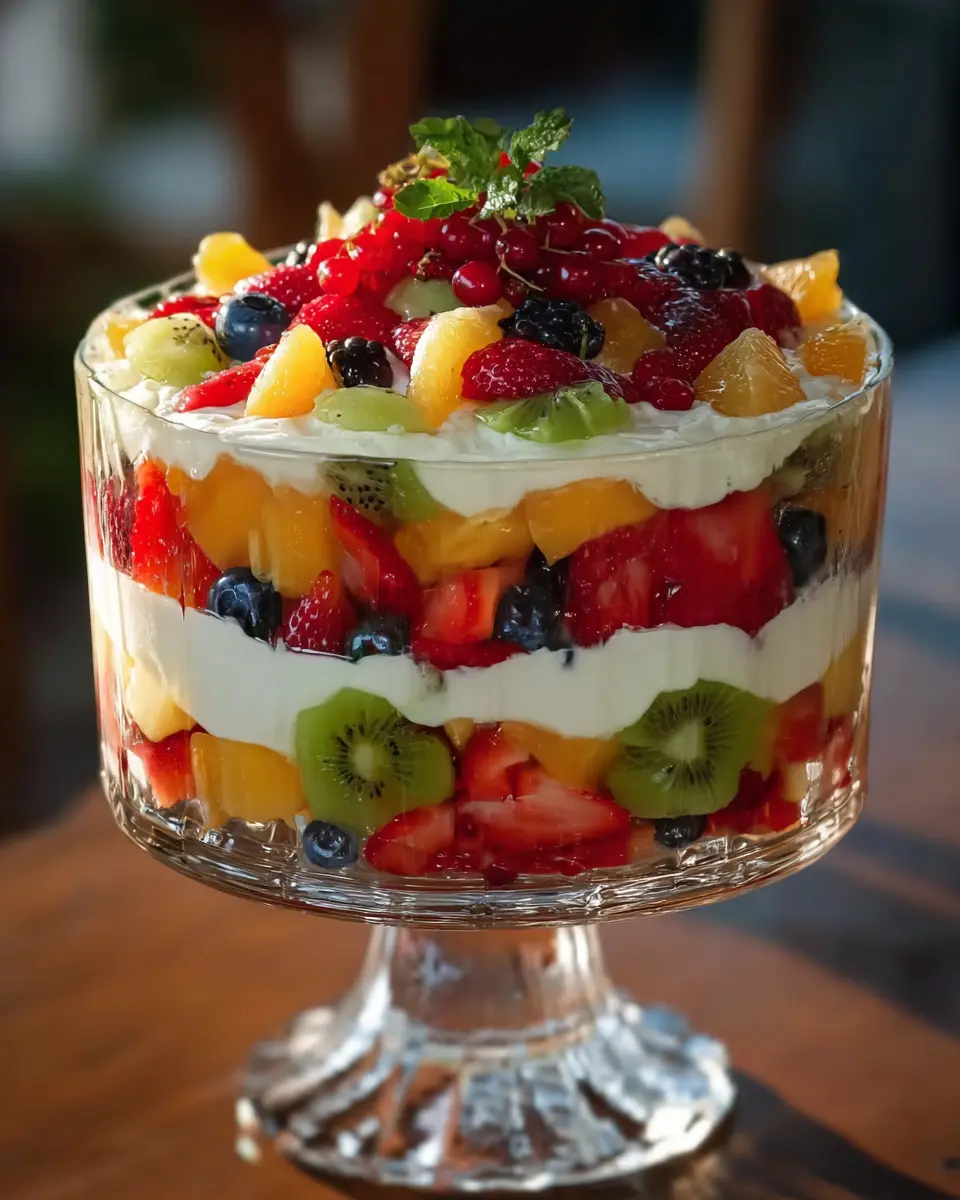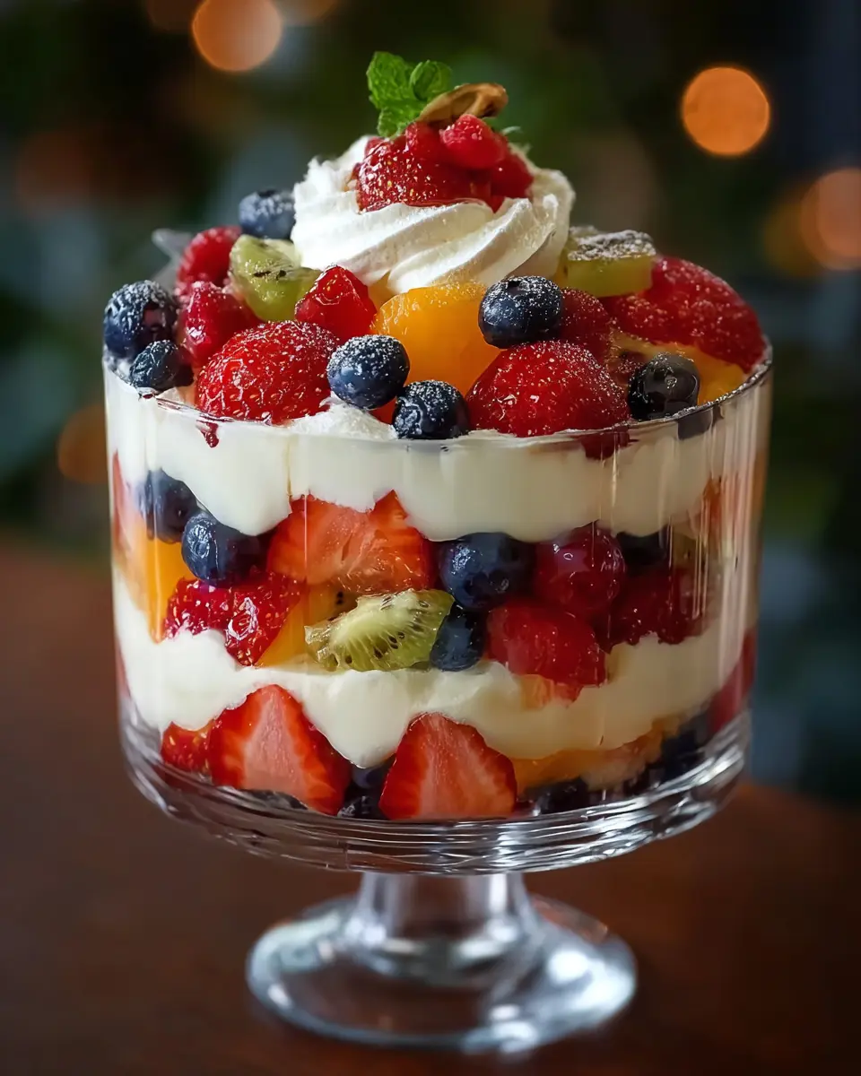 A light and delicious fruit trifle that is perfect for summer gatherings and celebrations.
