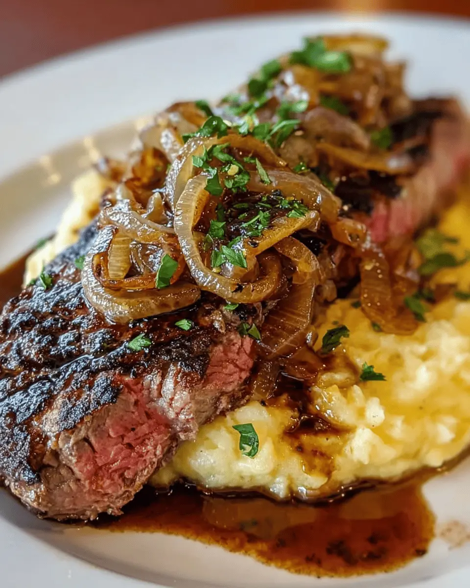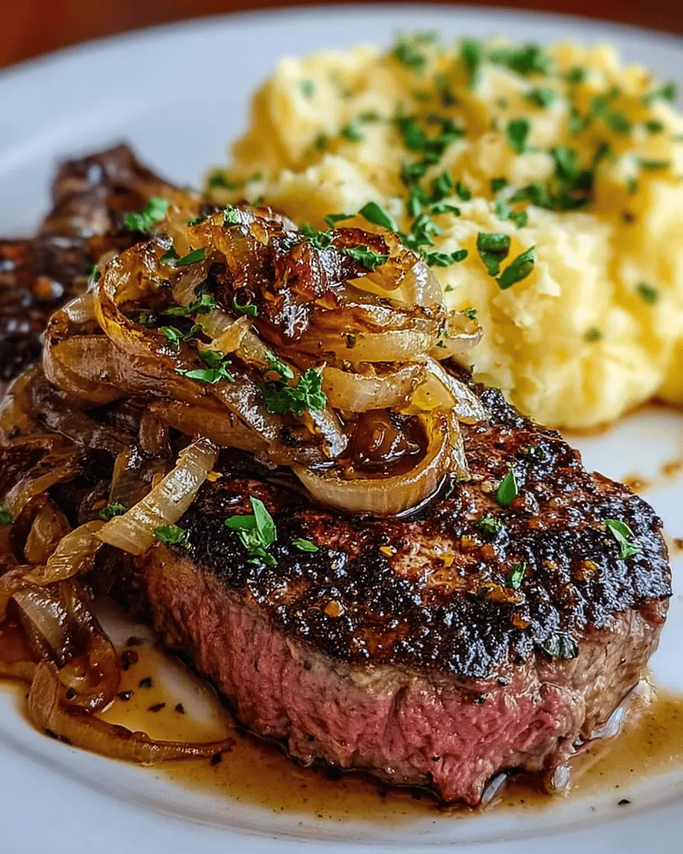 Ribeye Steak Recipe: Juicy Steak with Caramelized Onions & Mashed Potatoes