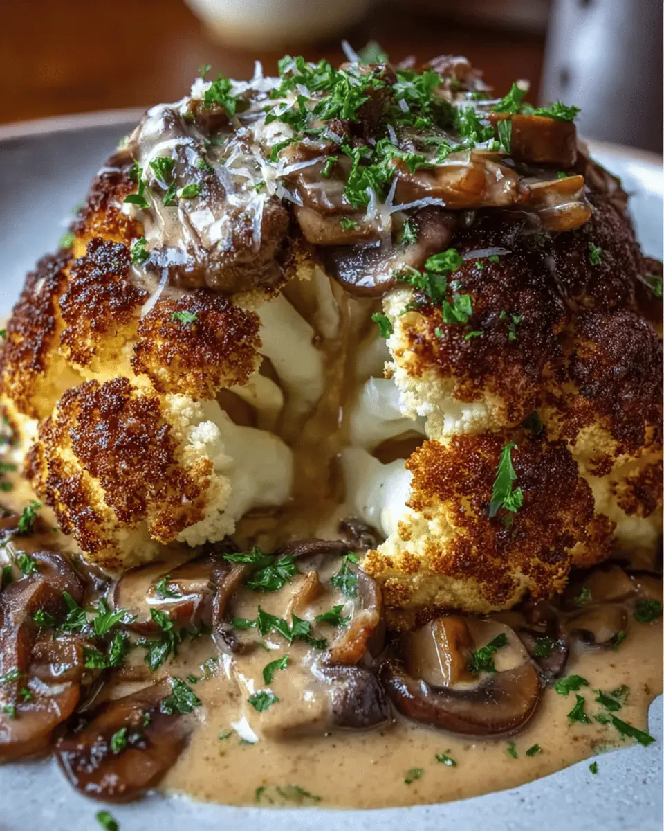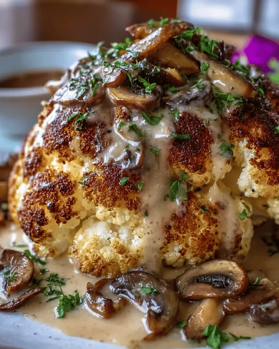 - Visual Appeal: A beautifully roasted head of cauliflower makes for an eye-catching centerpiece, especially when drizzled with a silky mushroom and Gruyère sauce.