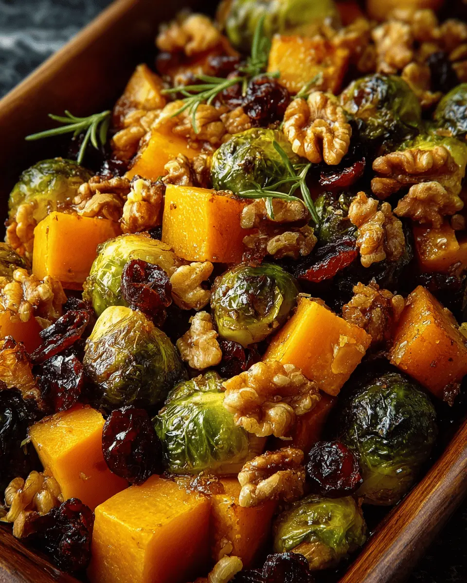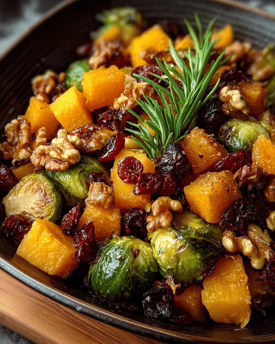 Roasted Brussels Sprouts: Delightful Butternut Squash with Maple Walnuts & Cranberries