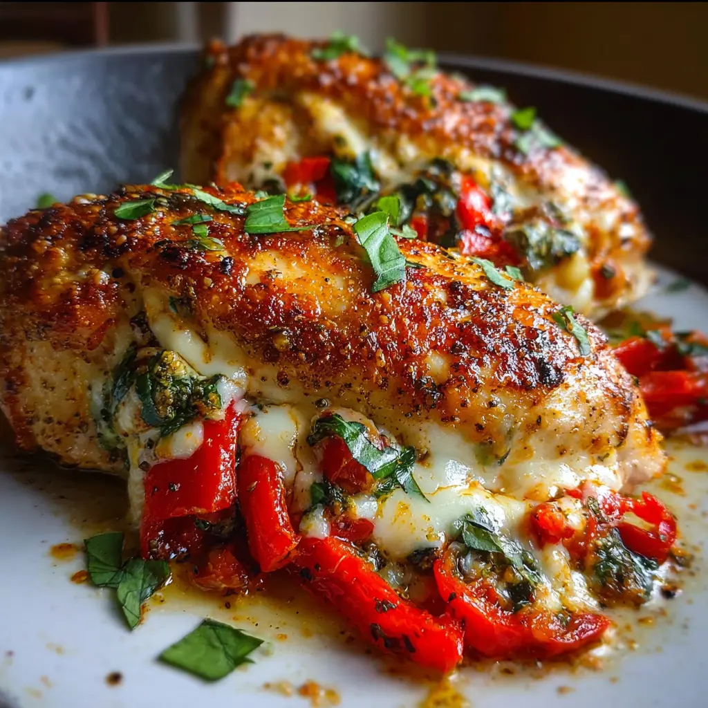This roasted red pepper mozzarella stuffed chicken is a delightful comfort meal that combines juicy chicken breasts with creamy mozzarella and flavorful roasted red peppers.