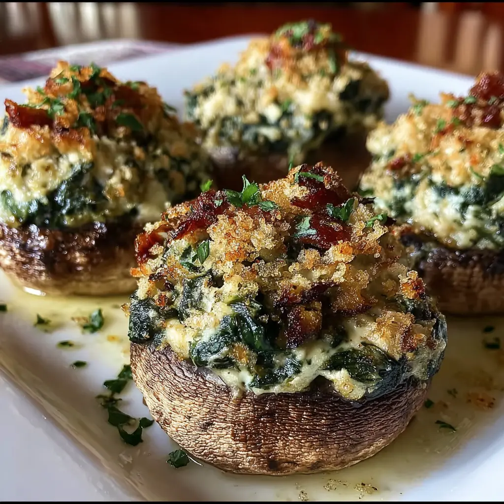 A delicious twist on classic stuffed mushrooms inspired by Ruth's Chris Steak House, featuring creamy spinach and rich flavors.