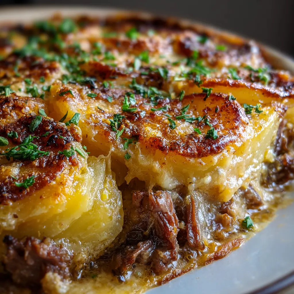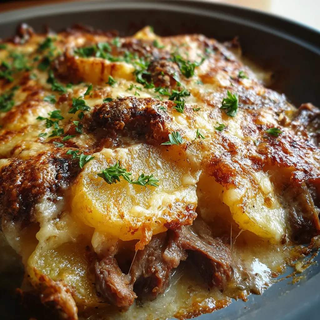 Experience the ultimate comfort food with this indulgent Slow Cooker Beef and Potato Au Gratin, perfect for family dinners or gatherings!