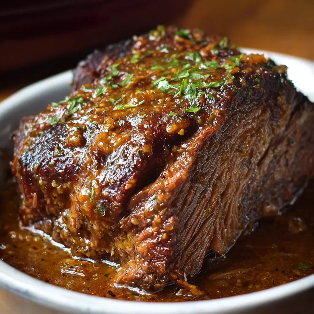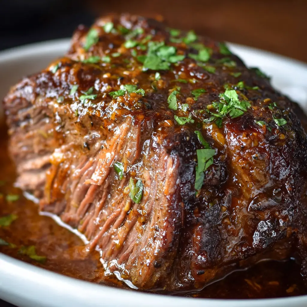 A delicious slow-cooked beef roast infused with honey and mustard, perfect for family dinners.