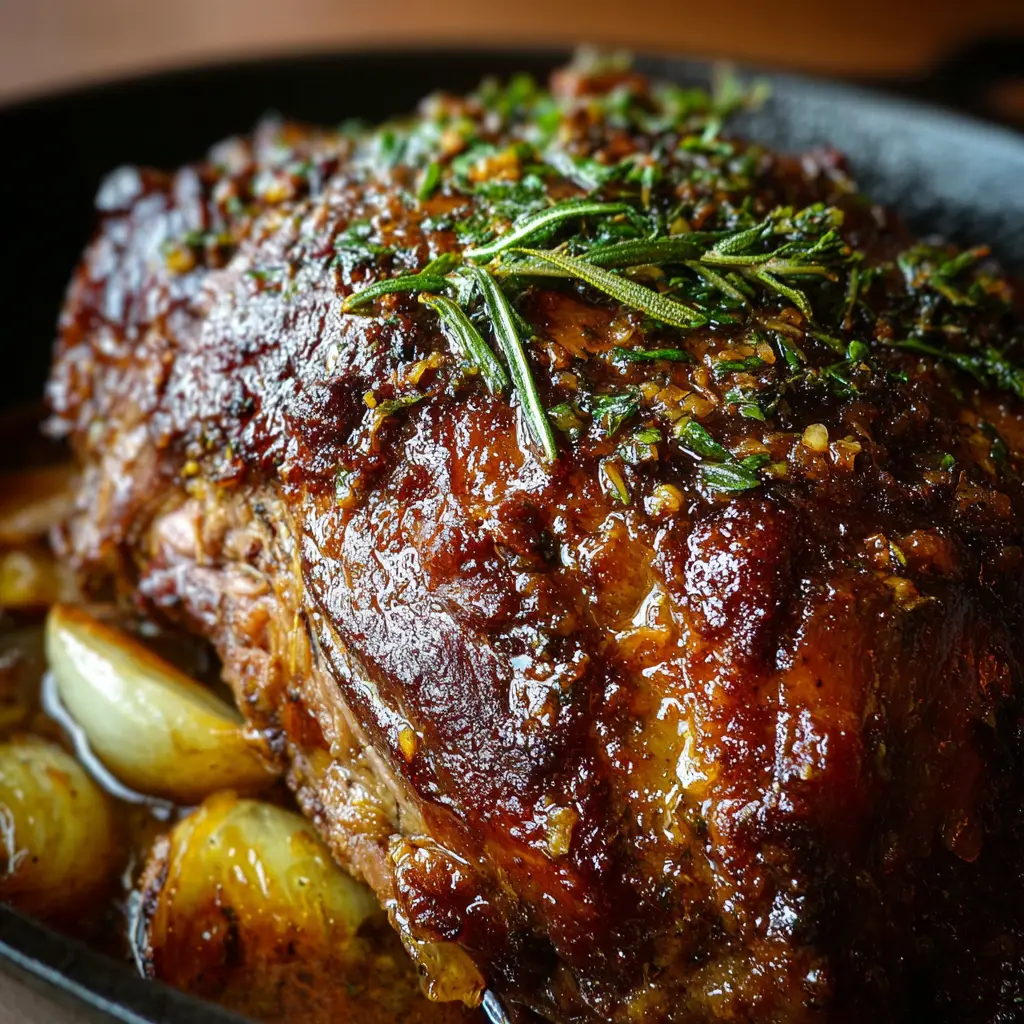 A delectable recipe for a slow-roasted lamb shoulder infused with garlic and honey, perfect for a special occasion.