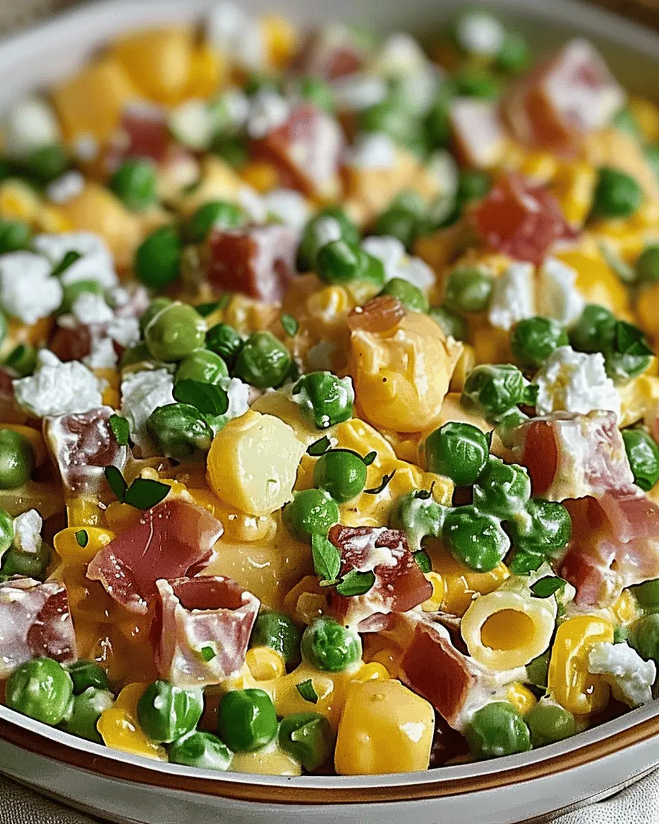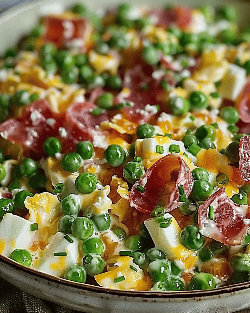 This delightful salad typically features a mix of peas, crunchy veggies, and hearty additions like Turkey Bacon and Chicken Ham. While it’s traditionally enjoyed in the South, its flavors can easily entice anyone—from busy professionals to food enthusiasts looking for a quick yet satisfying meal option. In a survey by the Southern Foodways Alliance, more than 70% of those polled stated that salad played a vital role in their family meals, tracing memories and traditions through recipes like this one.