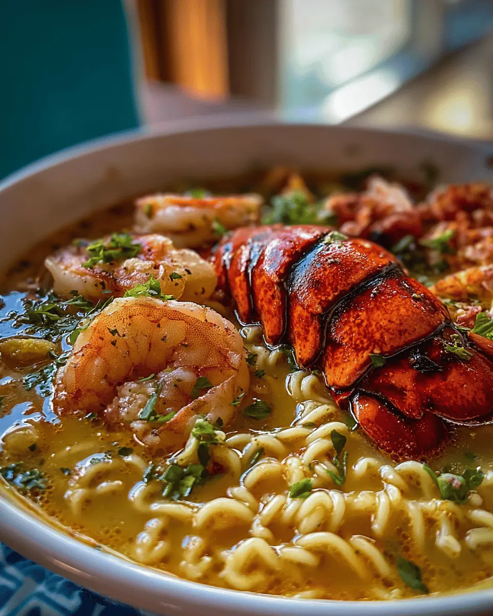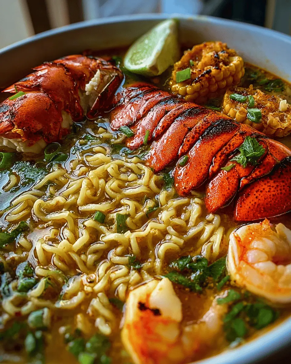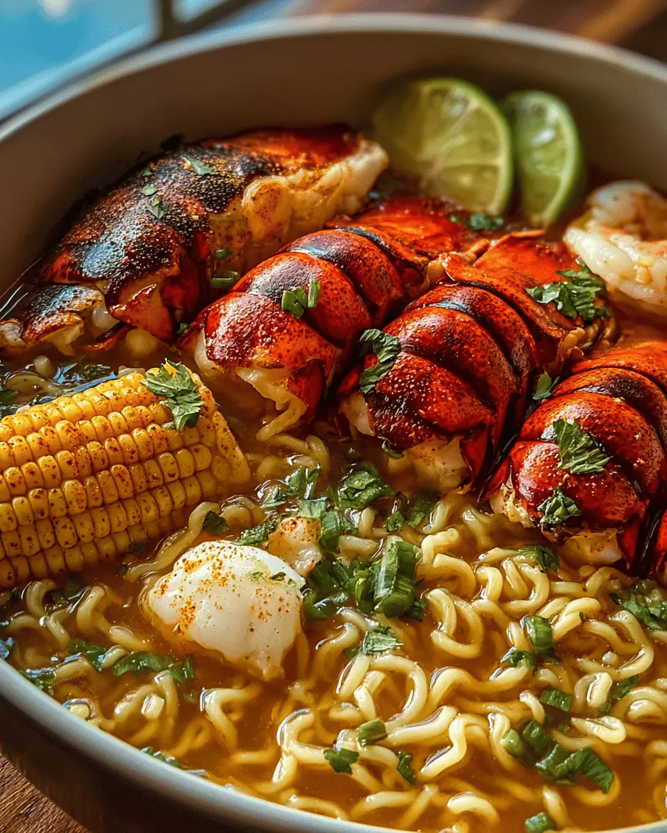 Southern Seafood Boil Ramen: Indulgent Garlic Butter Broth & Lobster Tail