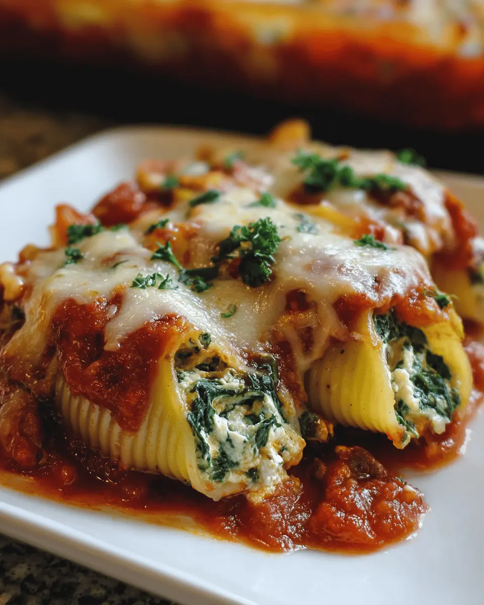 Presentation makes a huge difference when serving spinach ricotta stuffed shells. Arrange the shells in a large, colorful serving dish, layering them with marinara sauce, then sprinkle with fresh basil and grated Parmesan for that restaurant-quality vibe. You could also consider individual servings topped with a dollop of pesto or a garnish of cherry tomatoes for a pop of color.