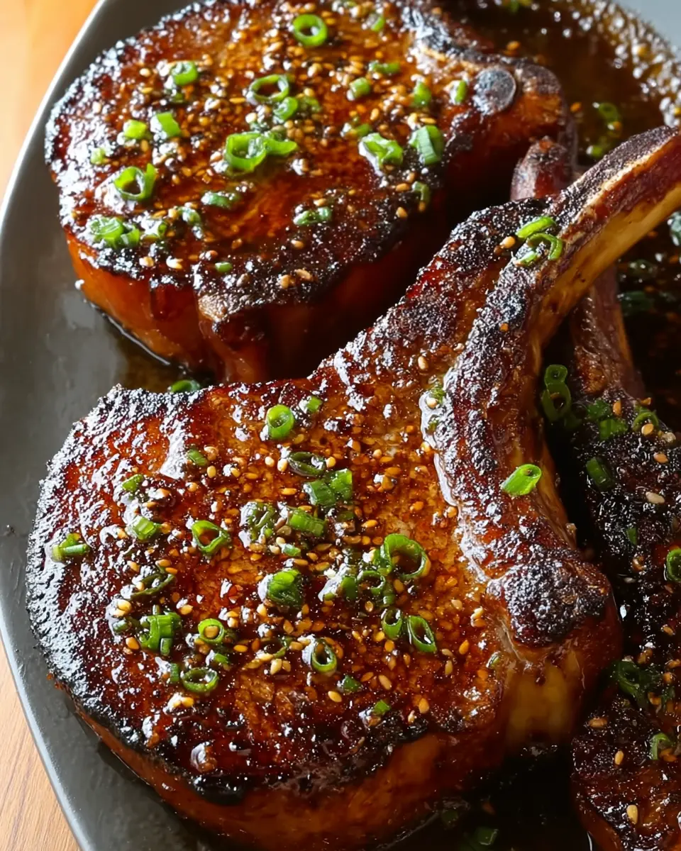 Indulge in the rich flavors of Sticky Honey Garlic Double Bone Beef Chops, perfect for a special dinner.