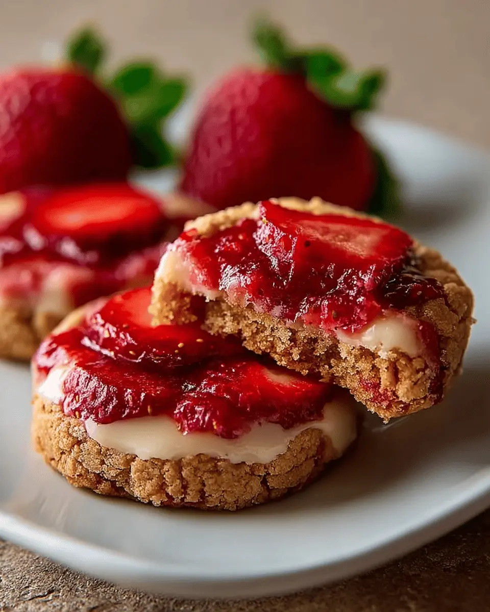 Delicious strawberry cheesecake cookies that combine creamy cheesecake flavor with fresh strawberries for a delightful treat.