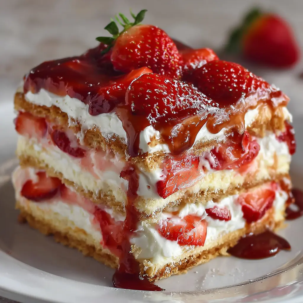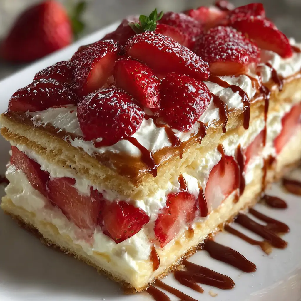 This Strawberry Eclair Cake is a delightful dessert that combines fresh strawberries and creamy filling for a perfect indulgence.