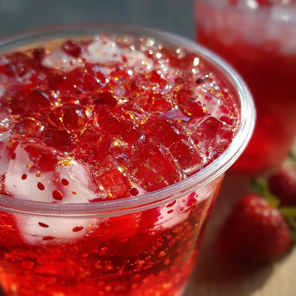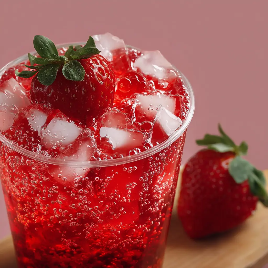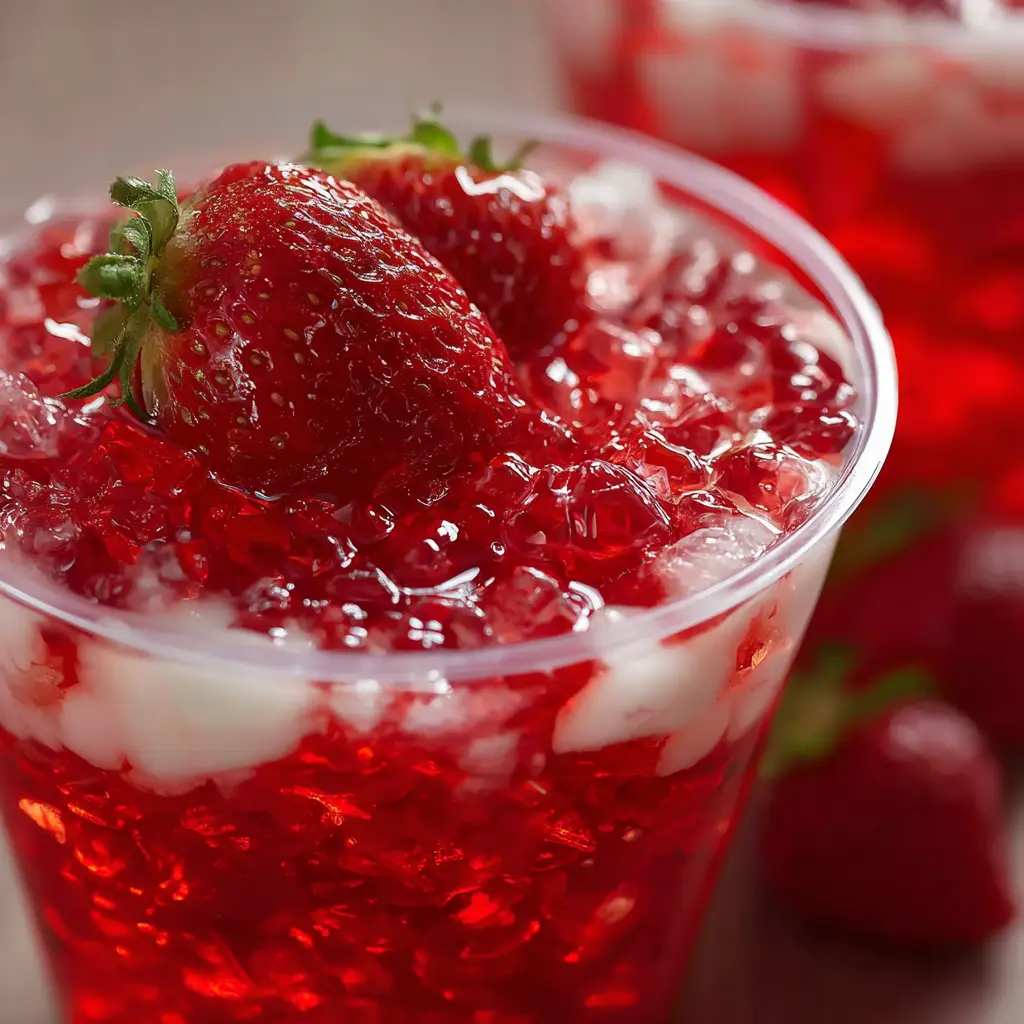 A delightful and refreshing drink that combines the sweetness of strawberries with the fun texture of jelly.