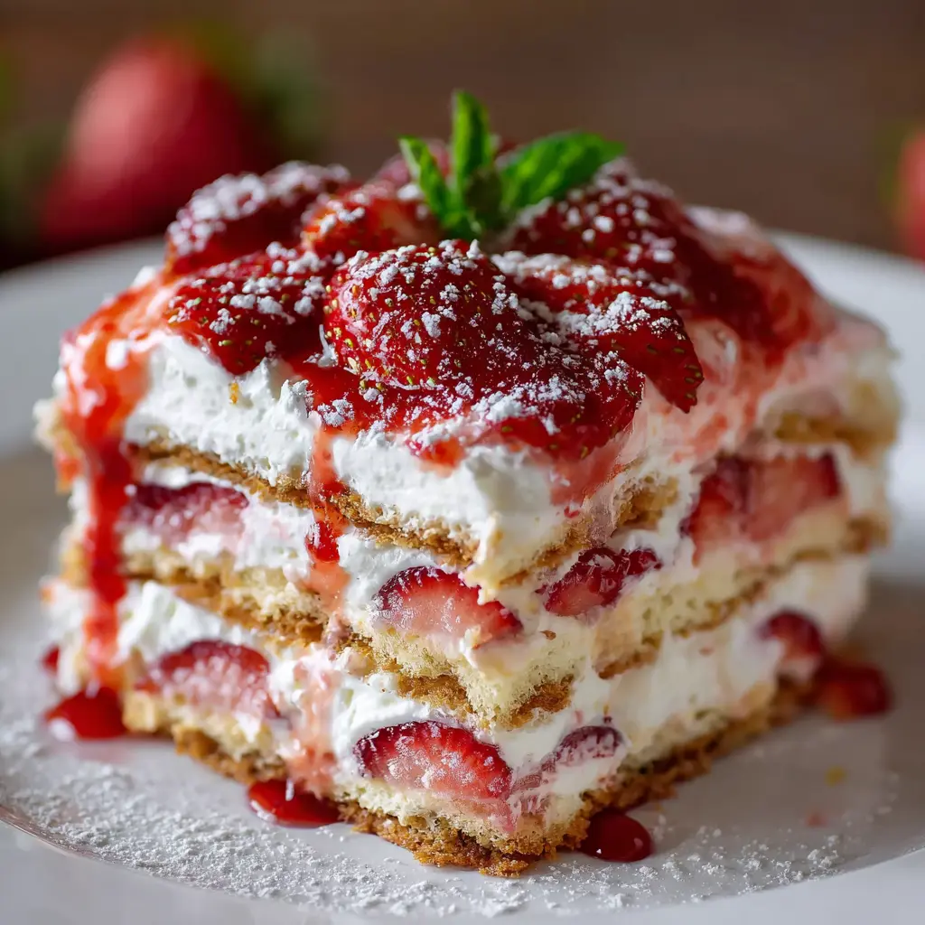Strawberry Lasagna: Easy No-Bake 4-Layer Dessert Delight