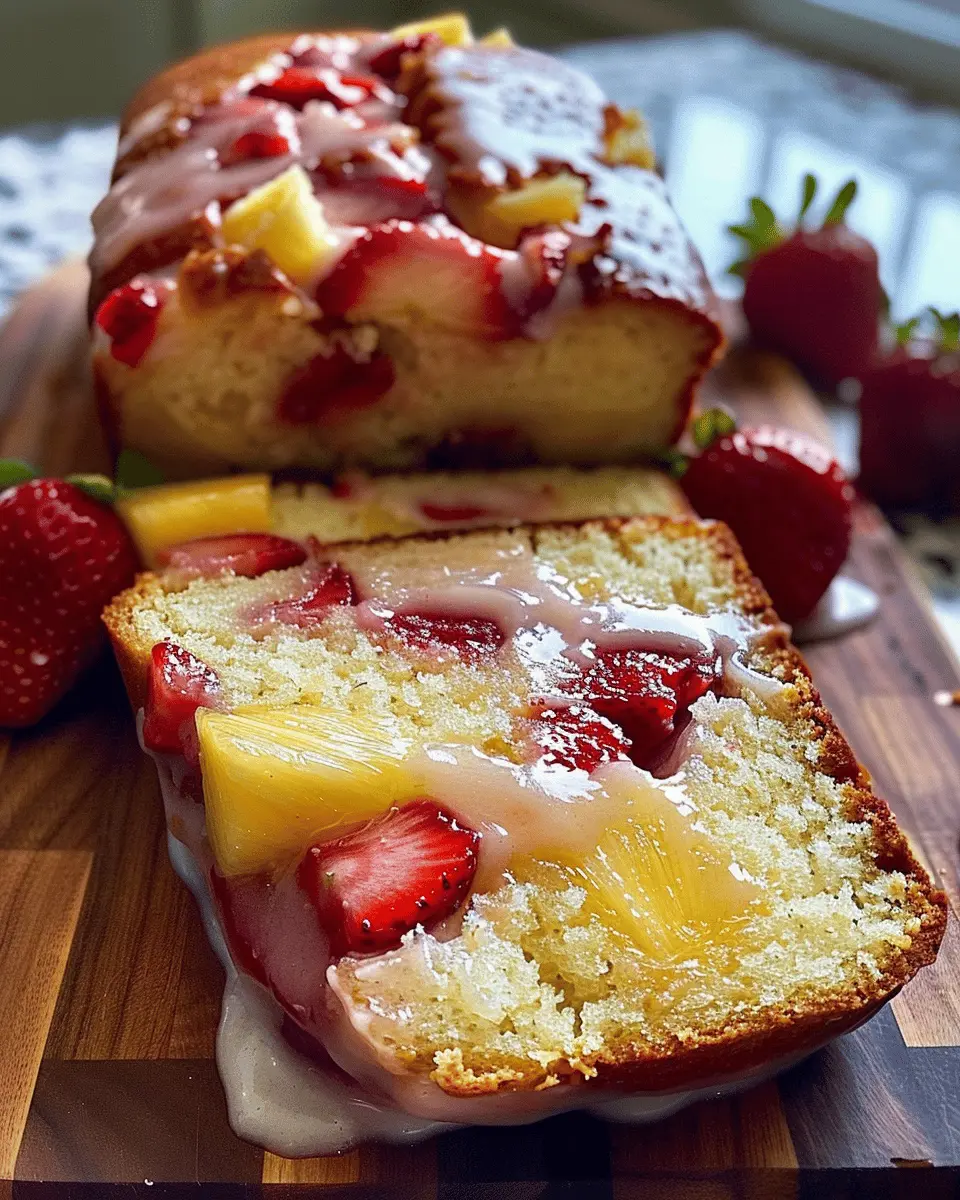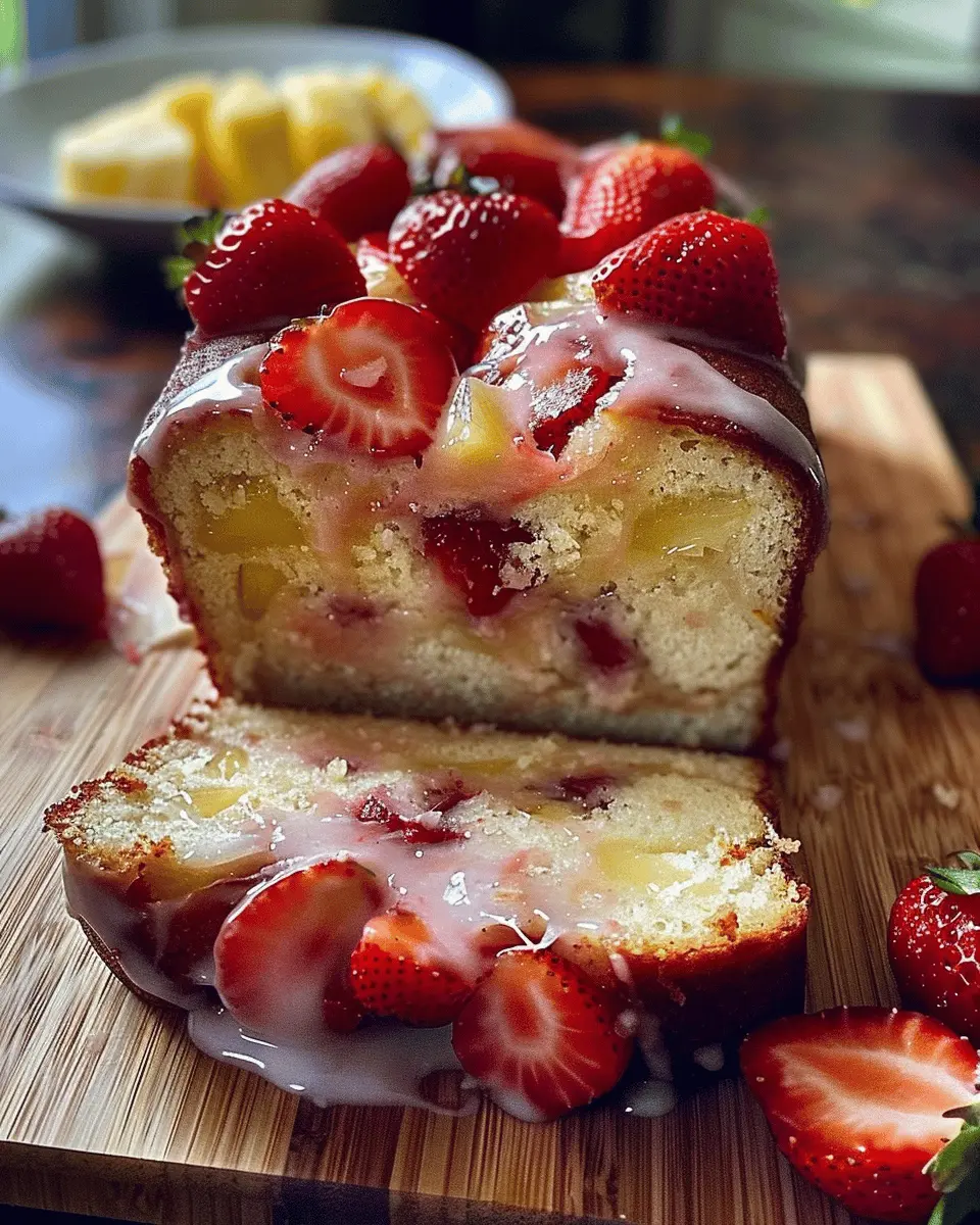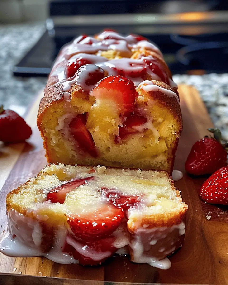 Enjoy the refreshing taste of summer with this delicious Strawberry Pineapple Pound Cake, perfect for any gathering.