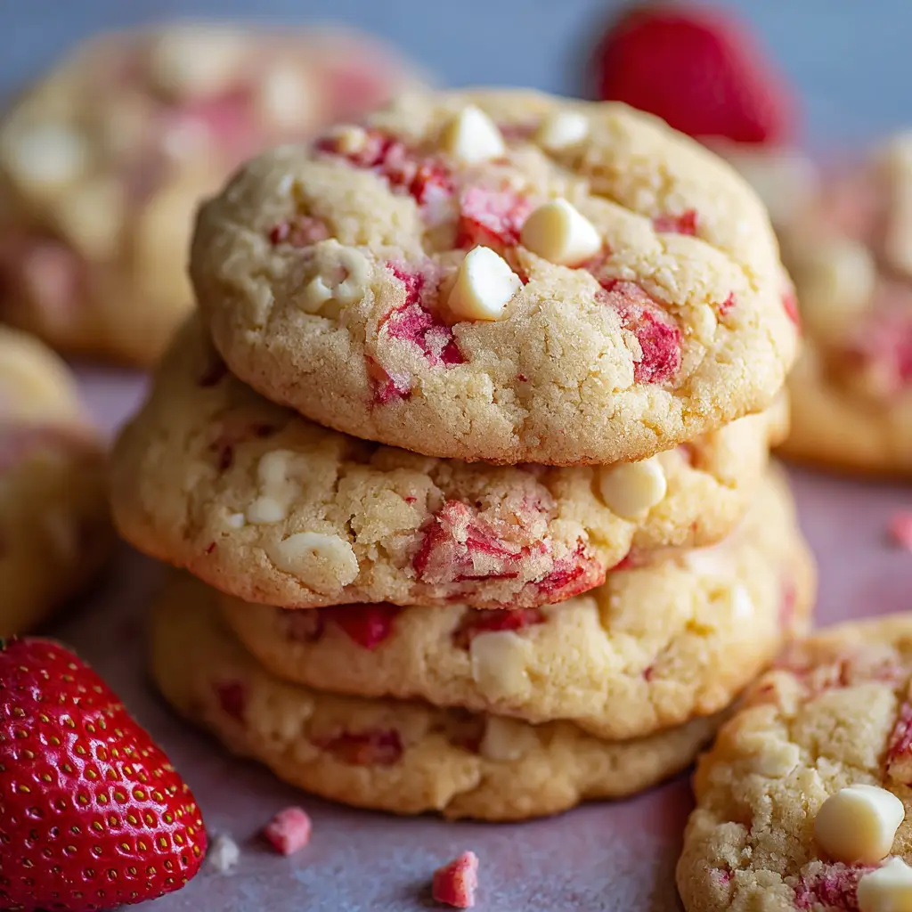 Imagine bringing these cookies to a picnic or brunch and watching your friends’ eyes light up. As they take their first bite, the delightful combination of sweet strawberries and rich white chocolate creates a flavor explosion that's simply irresistible. Plus, did you know that strawberry-flavored desserts can actually brighten your mood? According to psychology experts, the color and flavor of strawberries can evoke happiness—who wouldn’t want that?