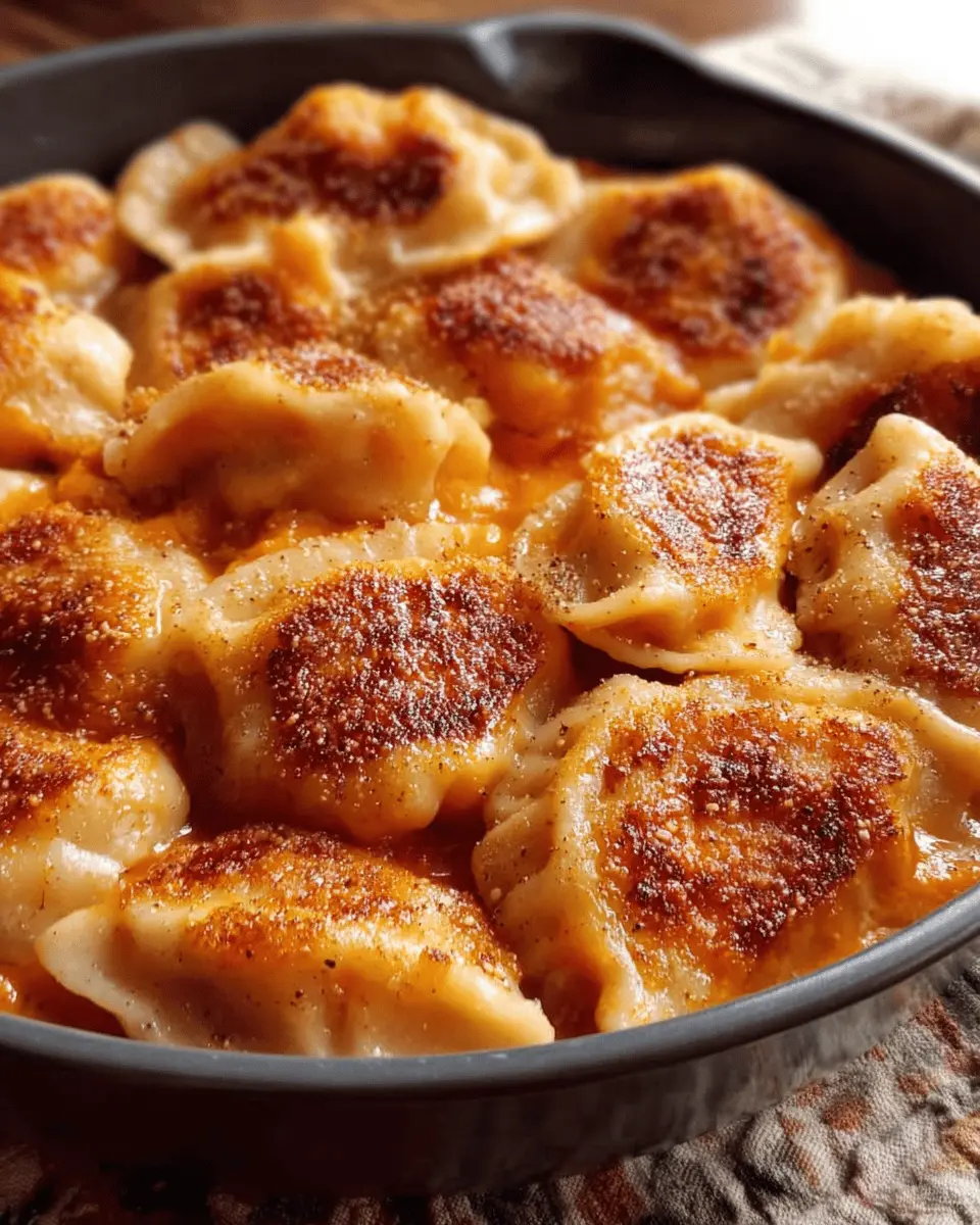 Drizzle the creamy sauce over the dumplings: Pour your prepared sauce evenly over the top.