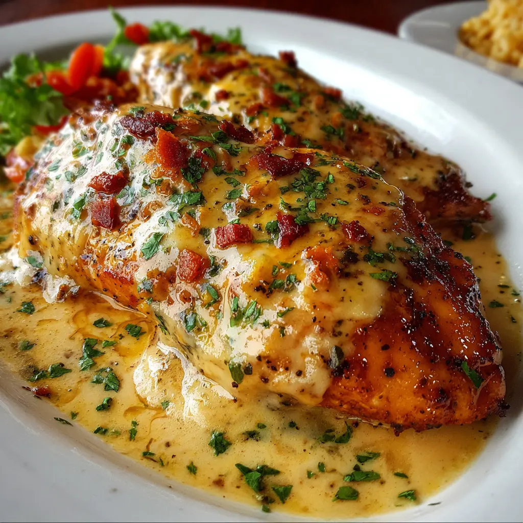 Texas Roadhouse Smothered Chicken with Jack Cheese and Turkey Bacon