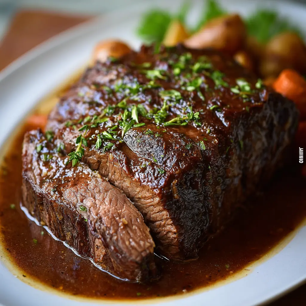After browning, add the reserved marinade back into the pot along with some beef stock to cover the roast halfway. Bring this to a gentle simmer, cover, and reduce the heat. You’ll want to cook it low and slow, ideally for about 3-4 hours. This is where the magic happens; your kitchen will be filled with an aroma that tells everyone what’s for dinner.