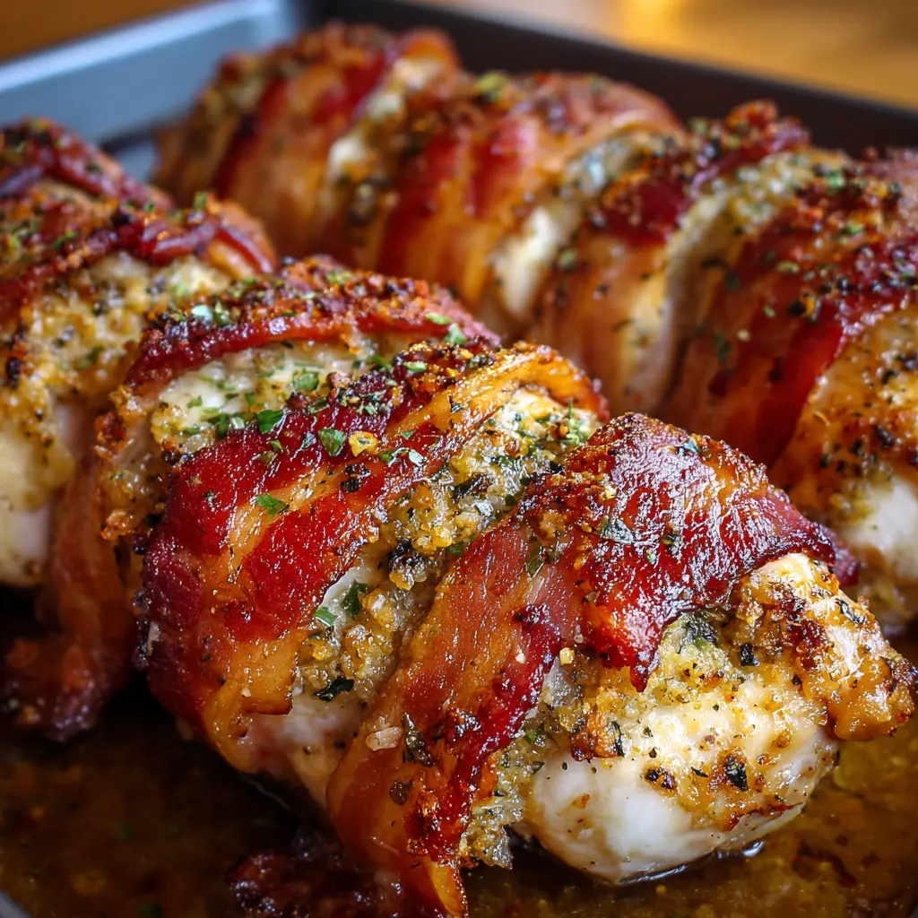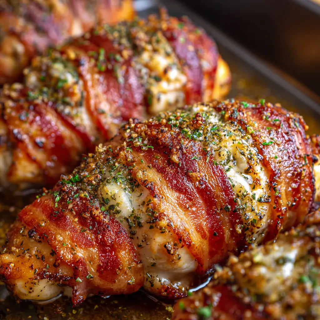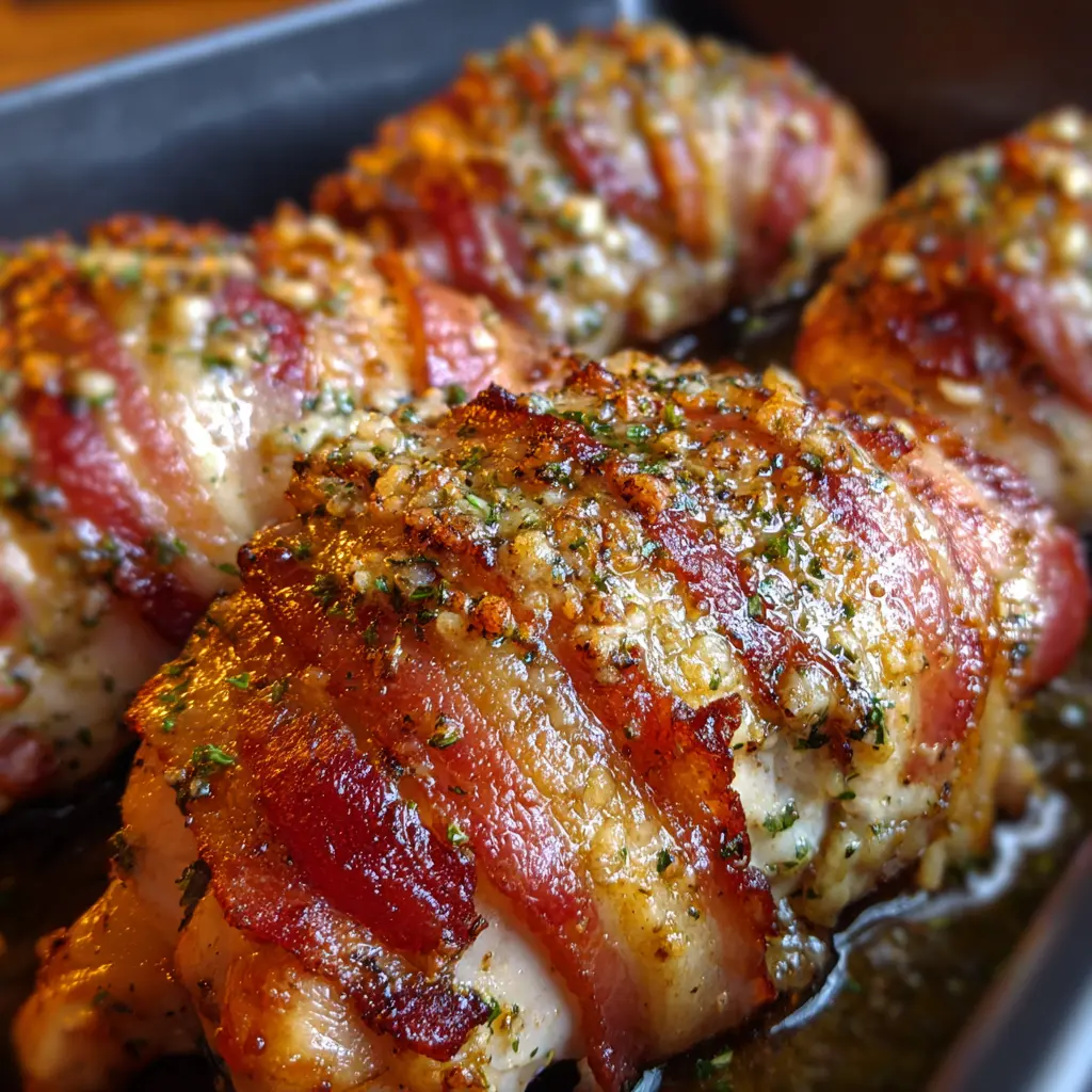 Turkey Bacon Wrapped Chicken: Juicy Garlic Parmesan Delight