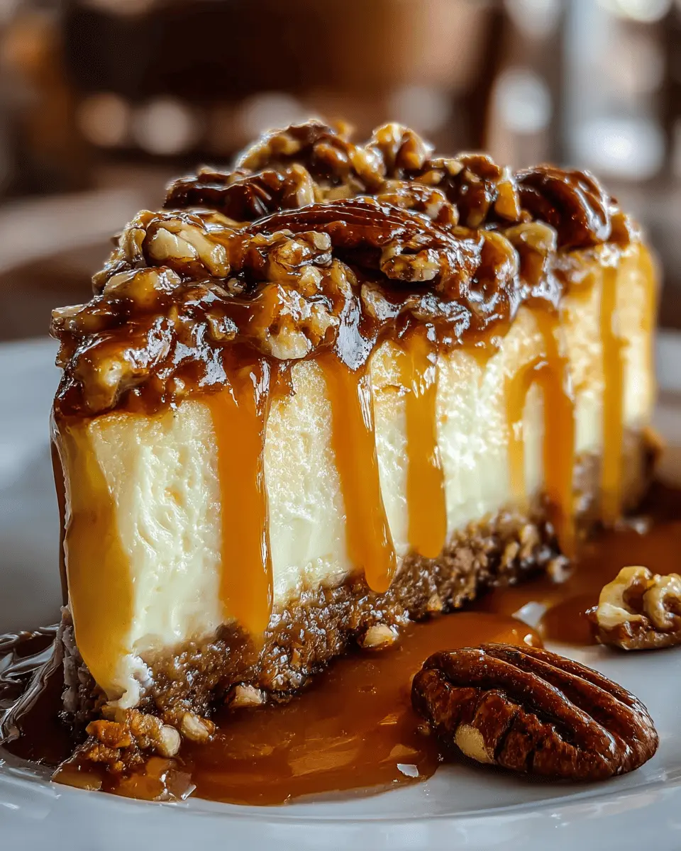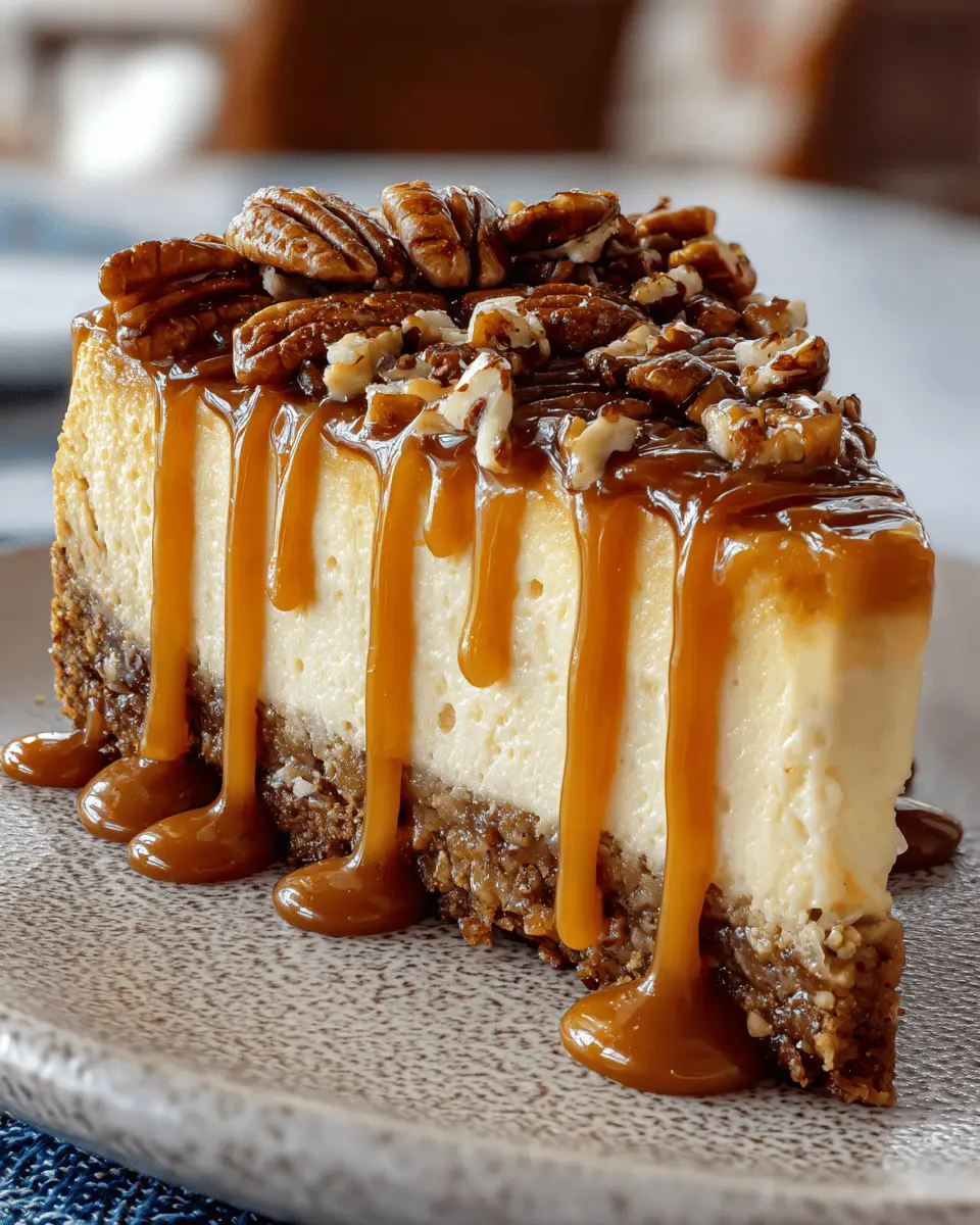 Elevate your ultimate caramel pecan cheesecake presentation with a few simple, yet impactful touches. Serve it on a stylish platter, garnished with extra caramel drizzle and a sprinkle of chopped pecans for that irresistible crunch. Consider cutting the cheesecake into bite-sized squares for a more casual affair—perfect for a potluck or a fun gathering with friends. You could even add a dollop of whipped cream or a scoop of vanilla ice cream alongside each slice for that creamy contrast.