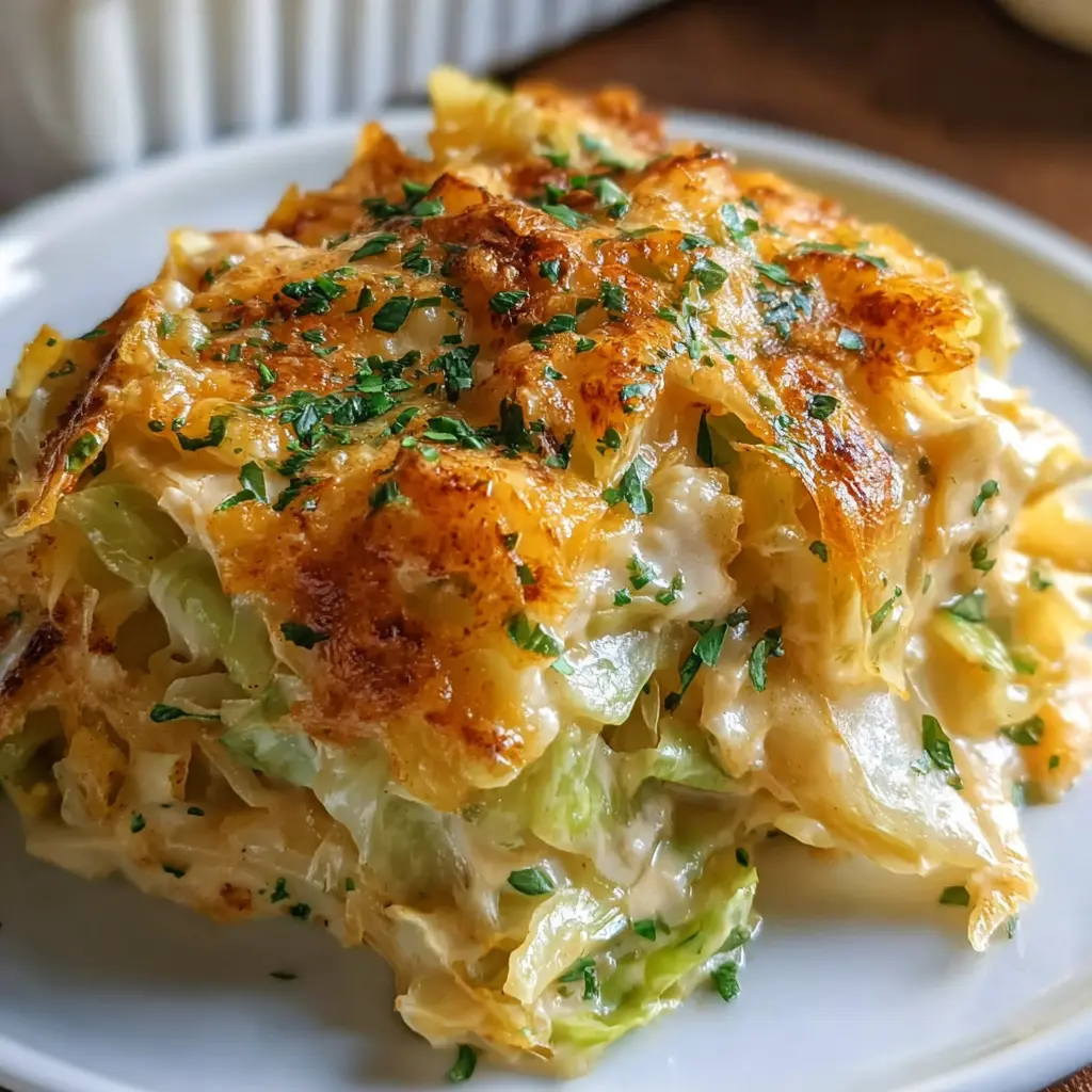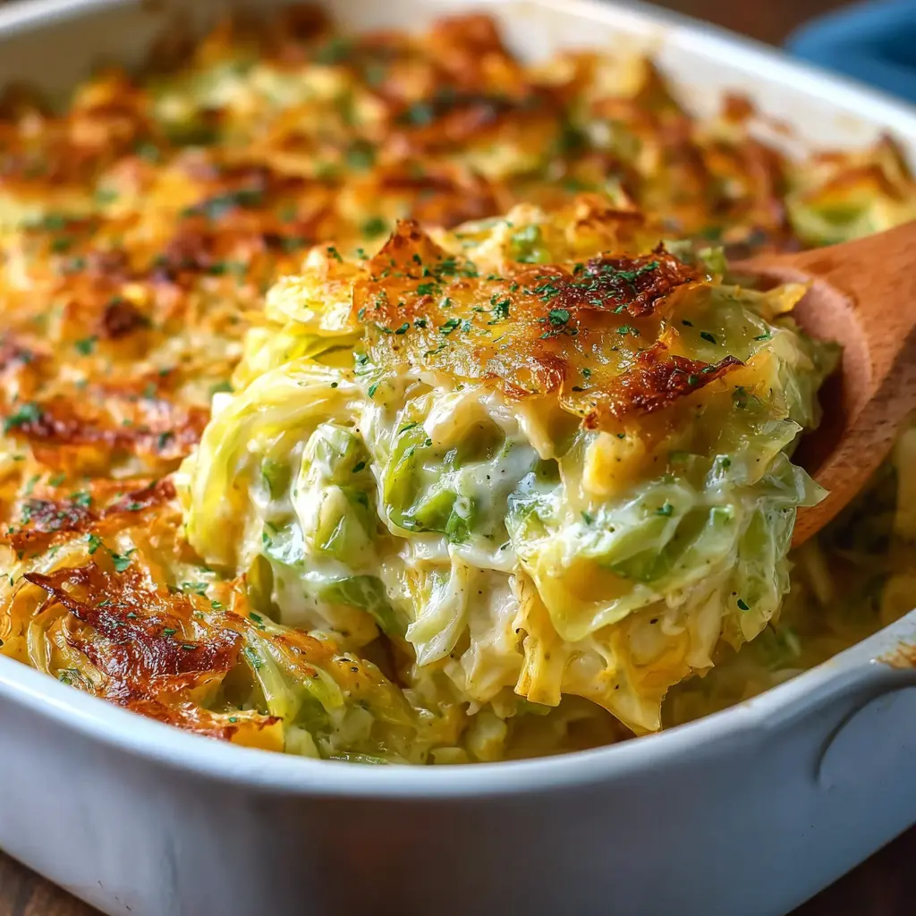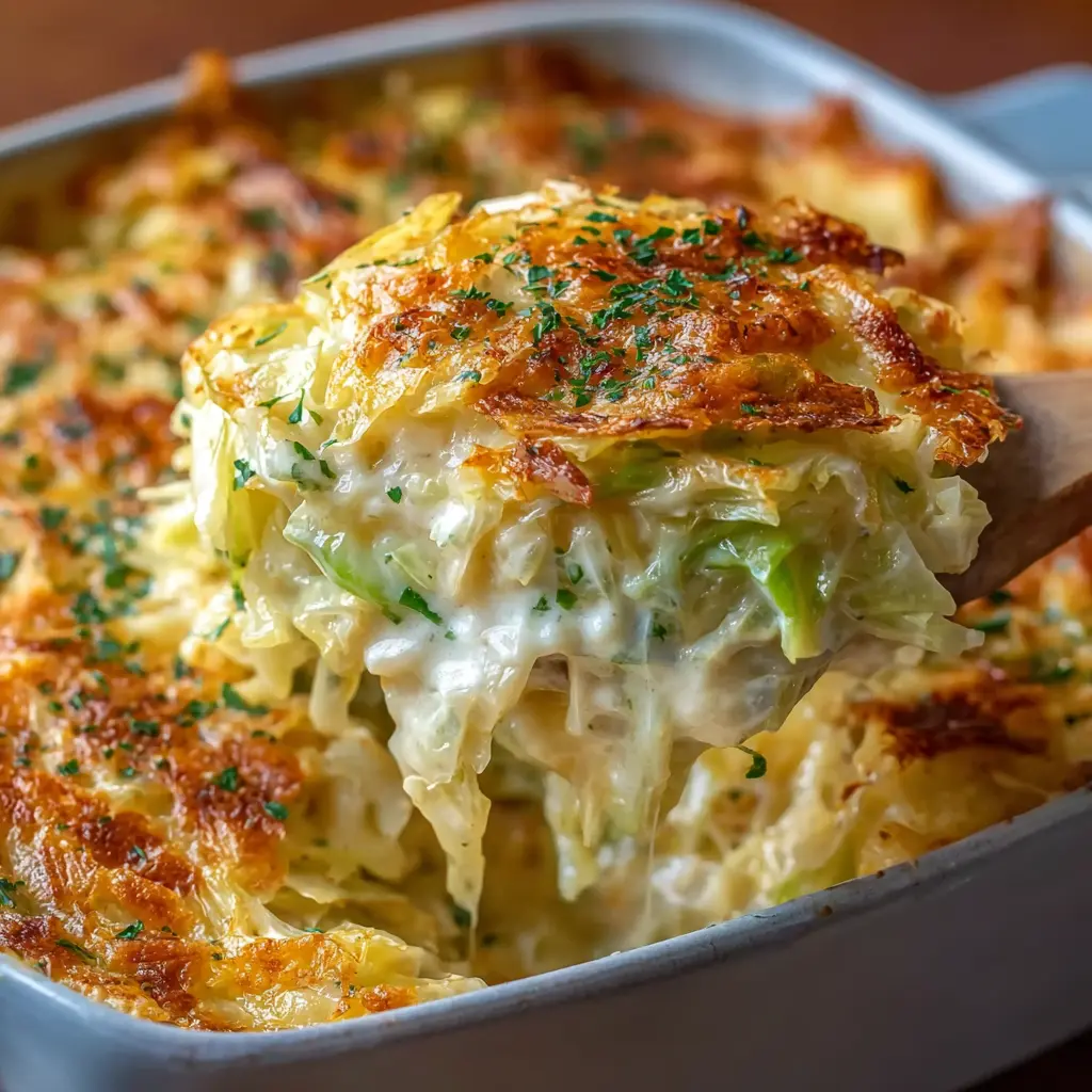 A delightfully creamy vegan casserole that brings together the richness of cheese with the freshness of cabbage.